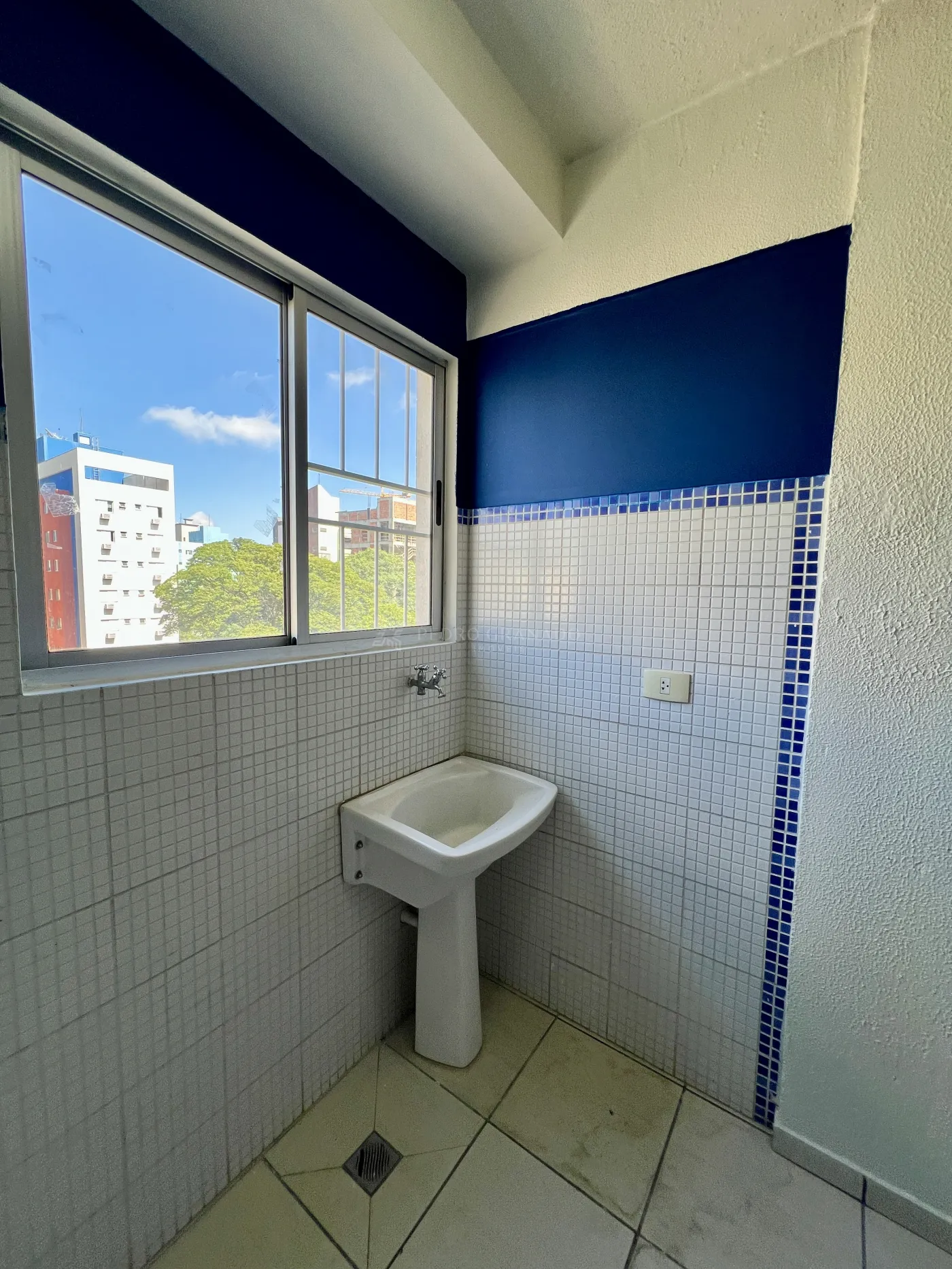 Área de serviço com armário e tanque;