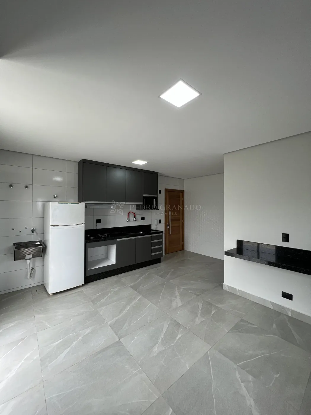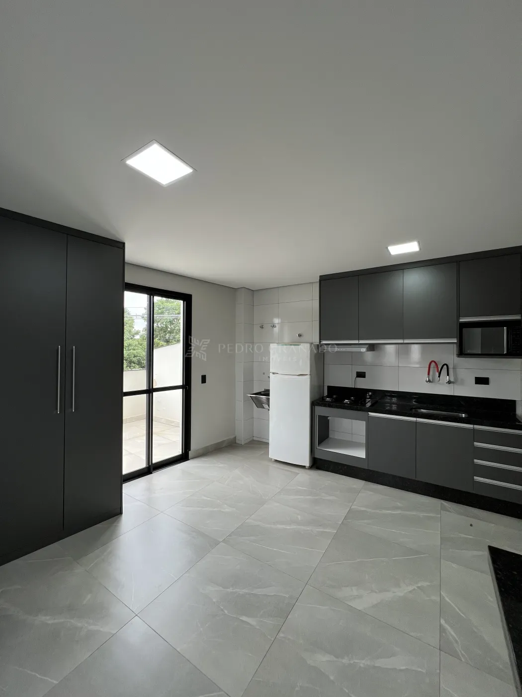 Este apartamento conta com uma cozinha planejada com cooktop, geladeira e micro-ondas, 01 dormitório com guarda-roupa planejado, banheiro social com armário e box, área de serviço e 01 vaga de garagem.