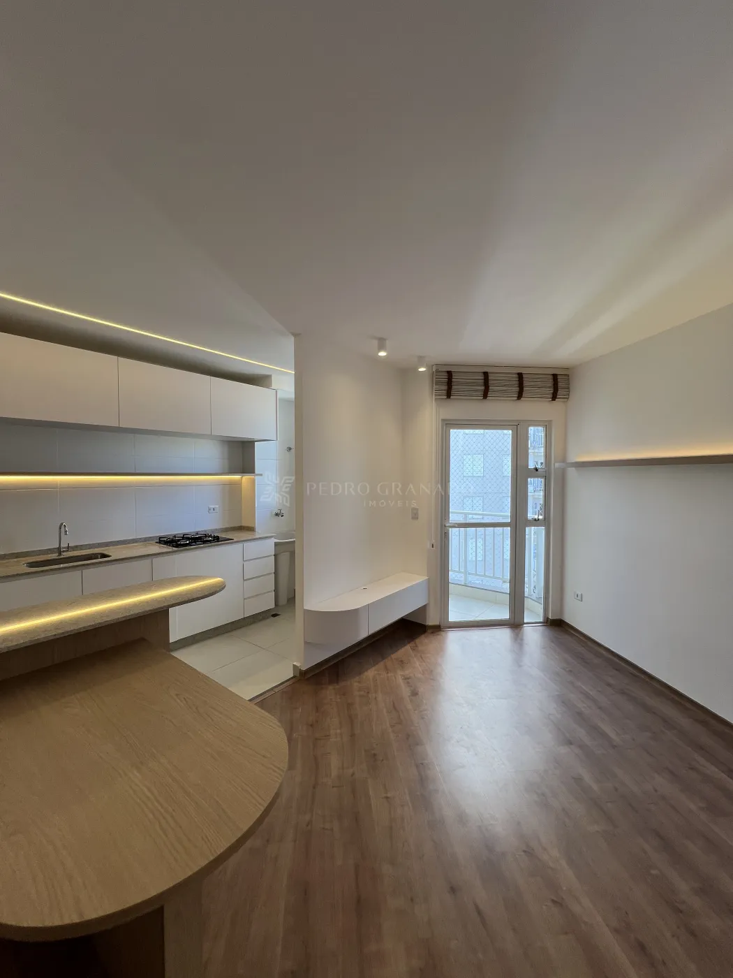 Com uma área útil de 54,54 m², este apartamento conta com uma sala dois ambientes com mesa e sacada, cozinha planejada, 02 dormitórios com móveis planejados, sendo 01 dormitório com cama, banheiro social com armário e box, área de serviço e 01 vaga de garagem.