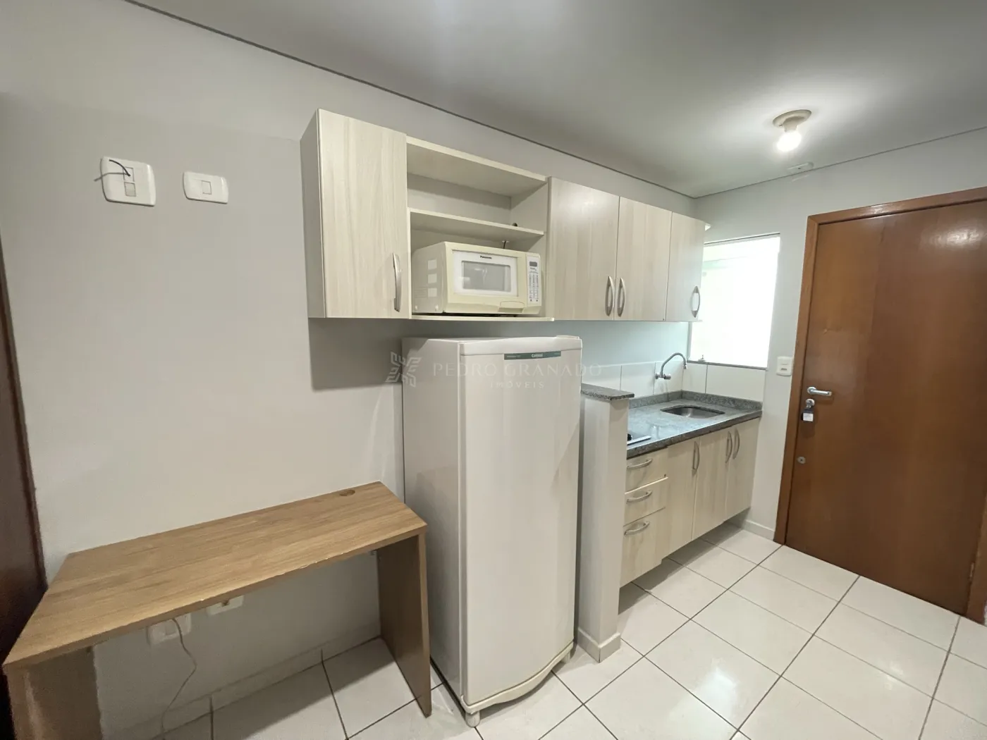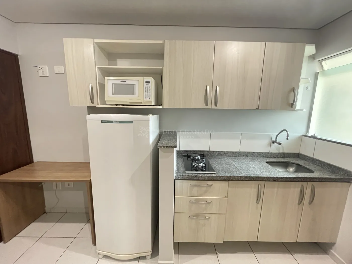 Com uma área útil de 34,87 m², esta kitnet conta com cozinha planejada com cooktop, micro-ondas e geladeira, 01 dormitórios com guarda-roupa, banheiro social com box, área de serviço com tanque e 01 vaga de garagem descoberta.