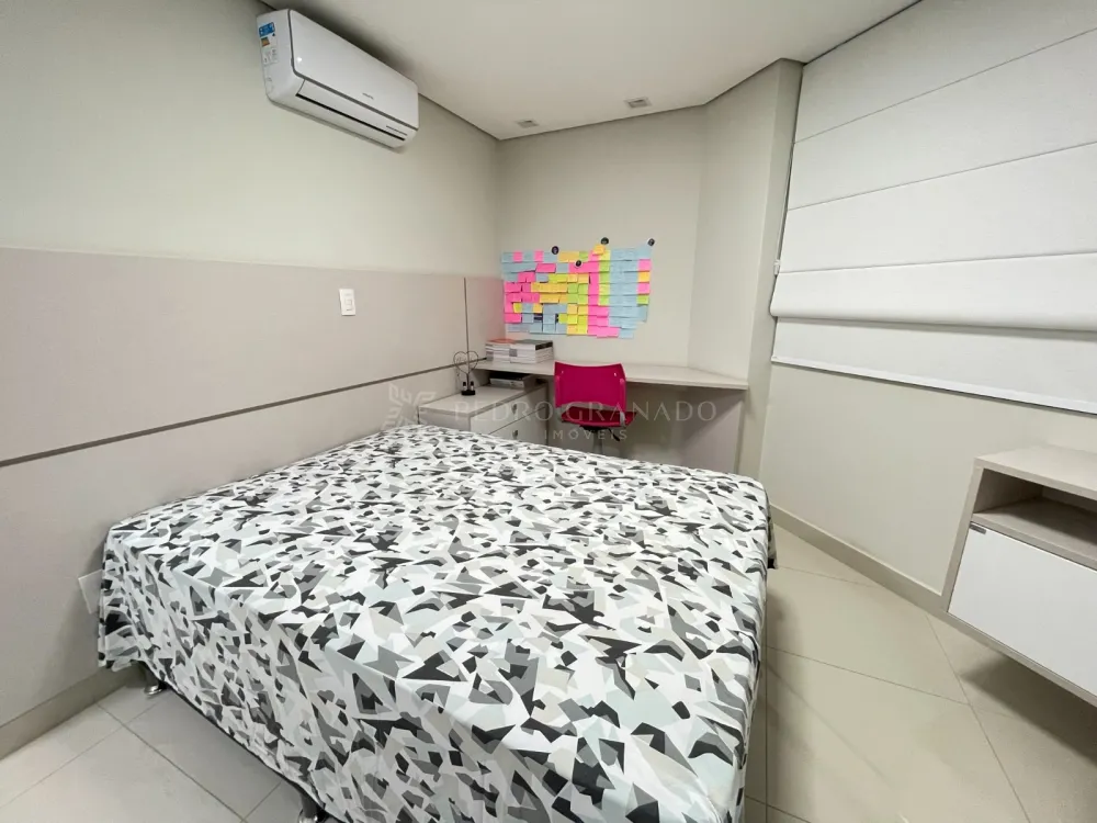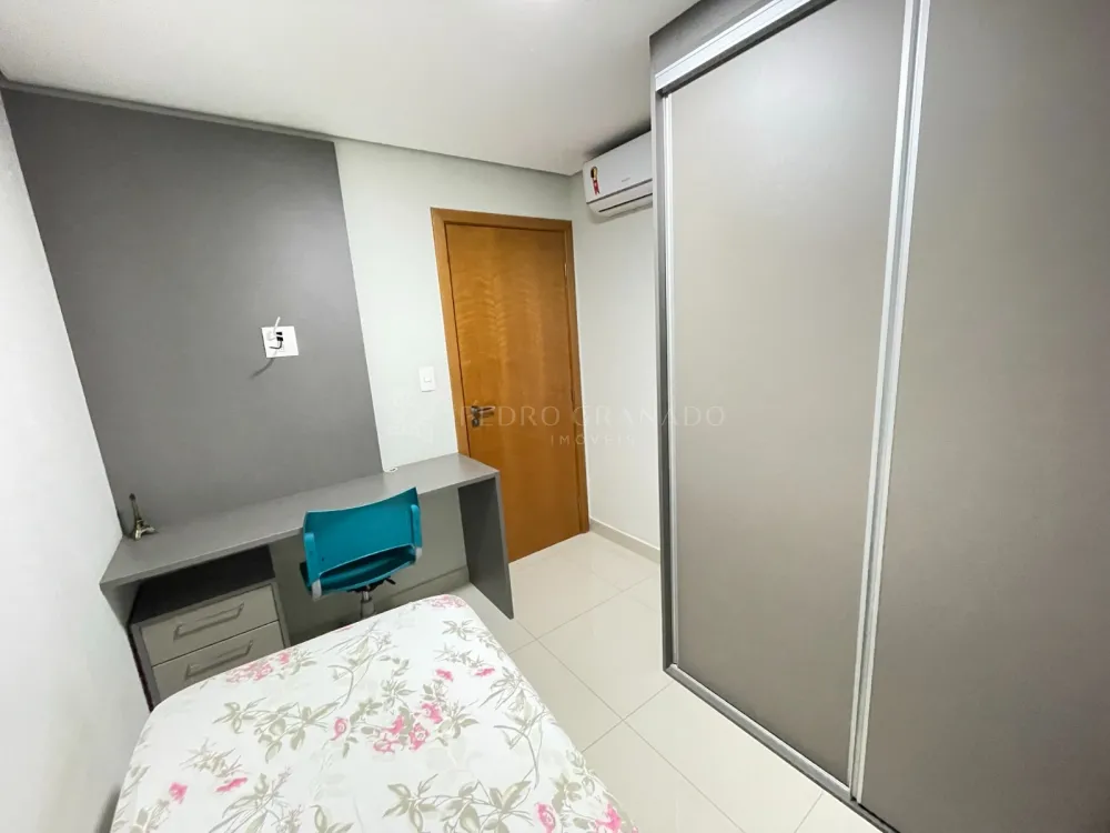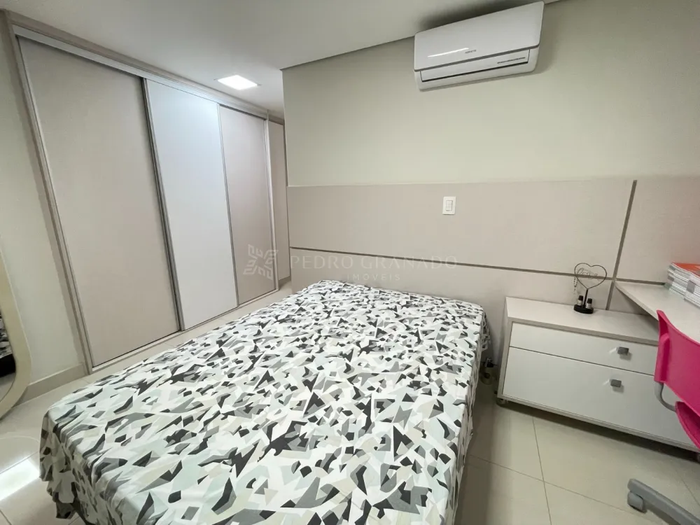 02 quartos, sendo 01 suíte com cama de casal, guarda-roupa de casal, escrivaninha com cadeira, criado mudo, ar-condicionado + 01 quarto com cama de solteiro, guarda-roupa de solteiro, ar-condicionado, escrivaninha com cadeira e painel de TV;