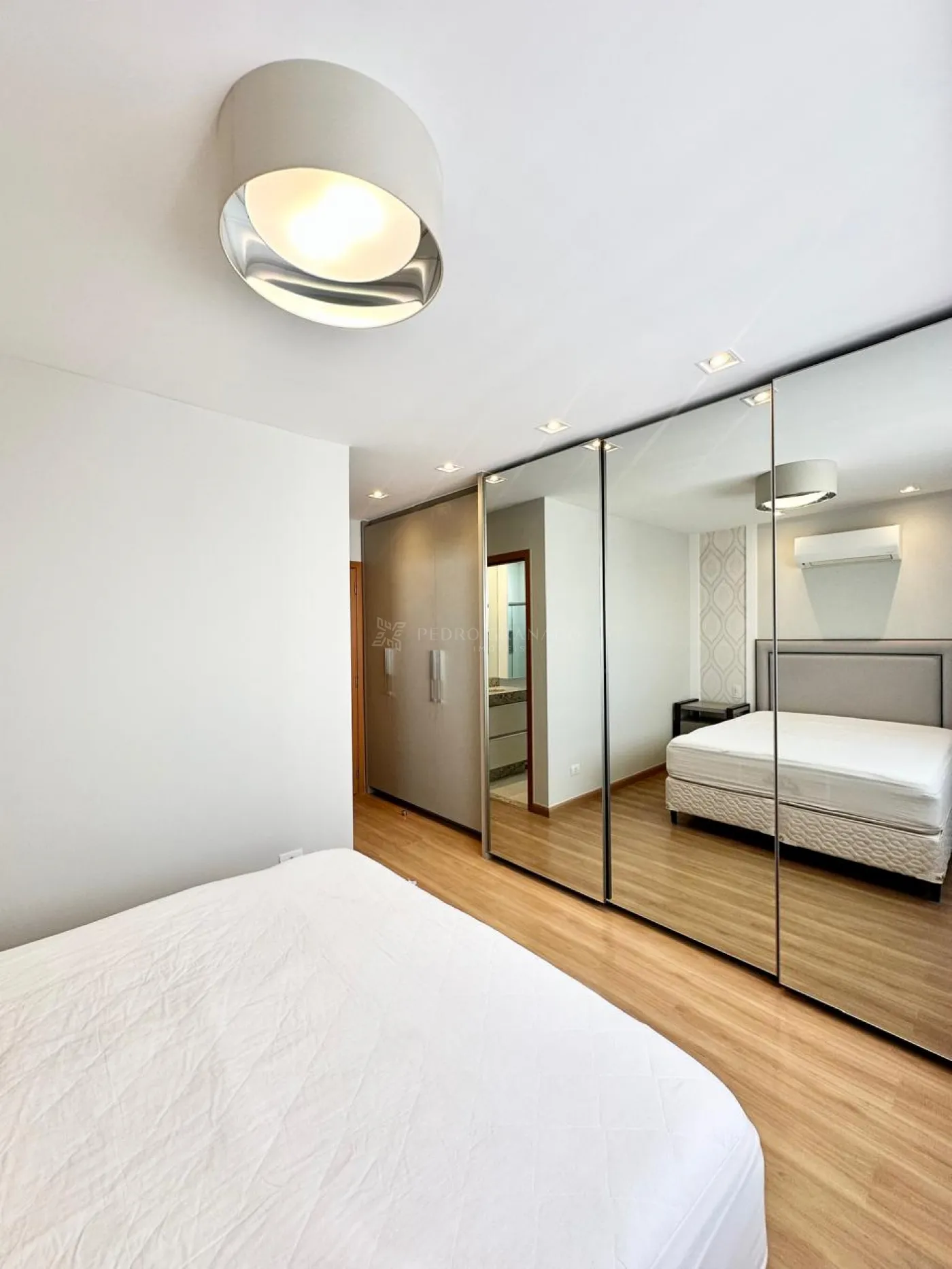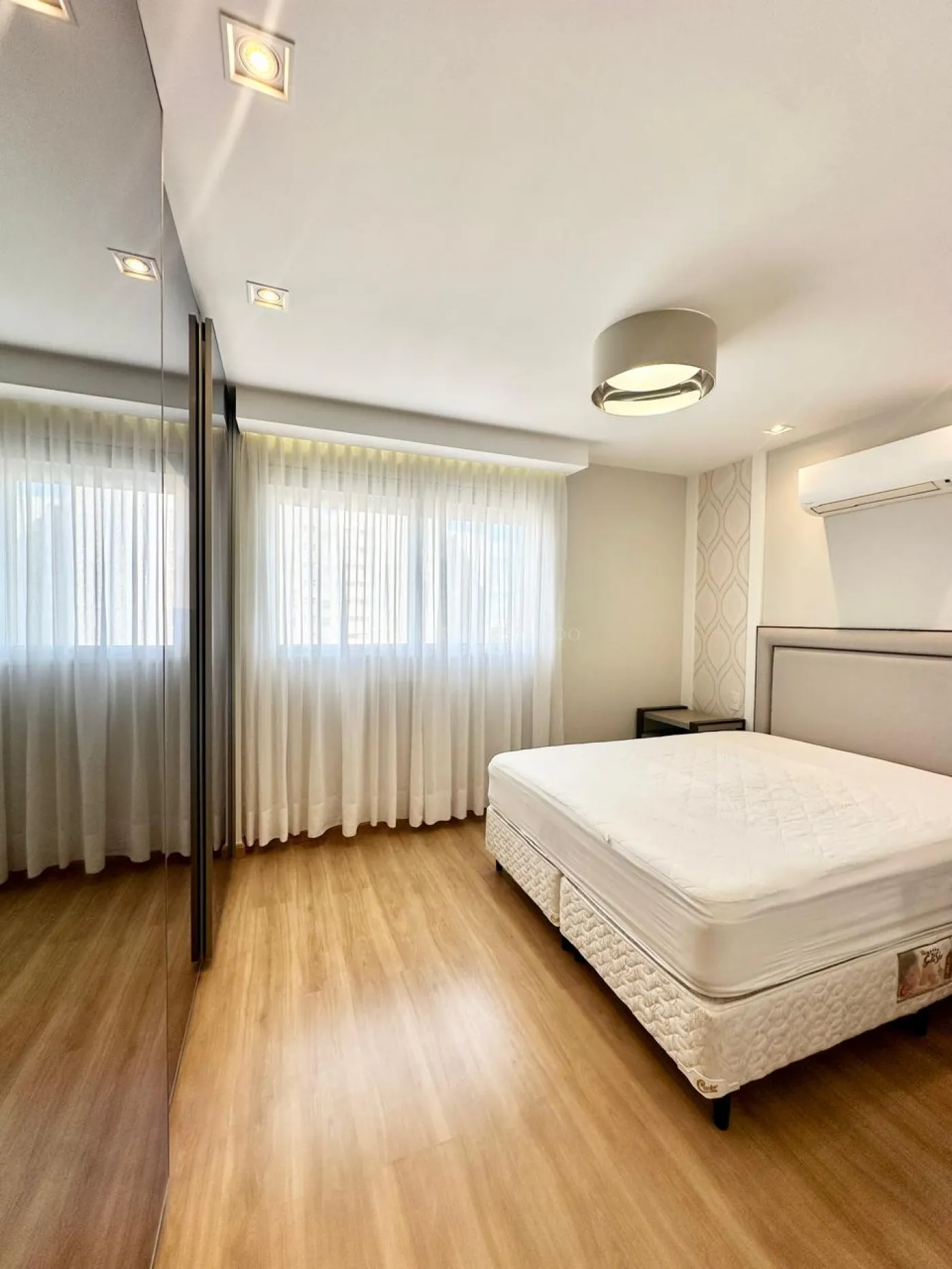 01 Dormitório com ar-condicionado e cortinas;