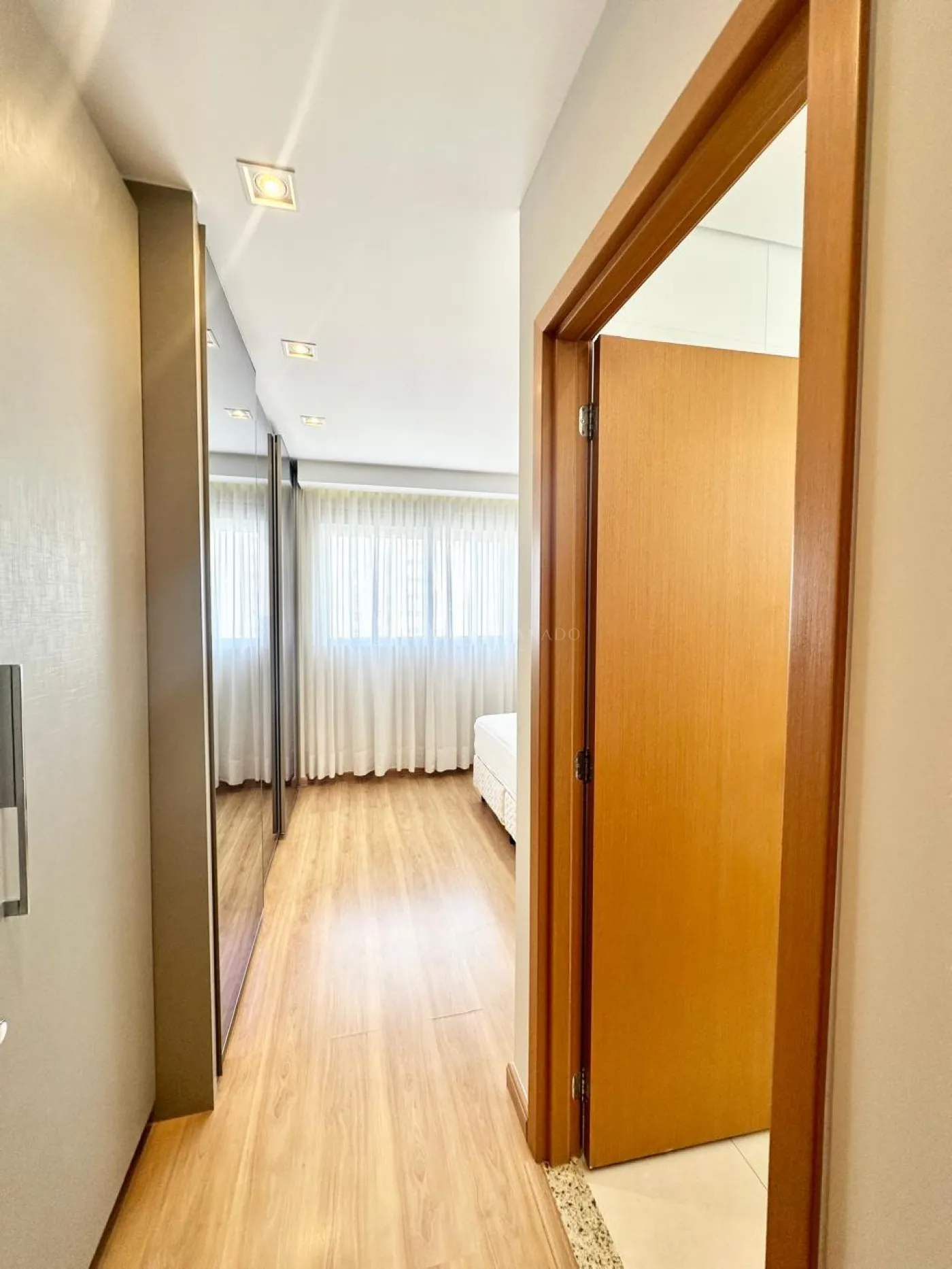 03 Dormitórios sendo 01 deles Suíte com guarda-roupa planejado com TV embutida, mesas de cabeceira, ar-condicionado, luminárias, cortinas, cabeceira e cama;