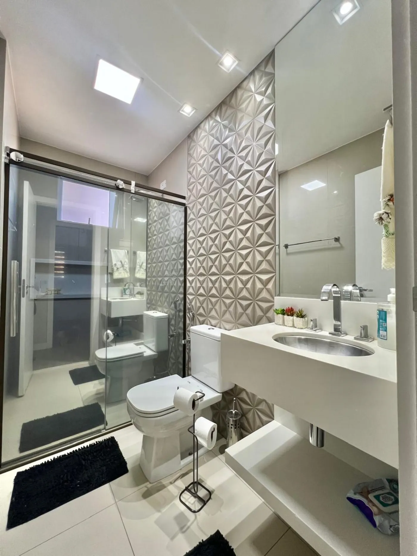 Banheiro Social com box blindex, espelho