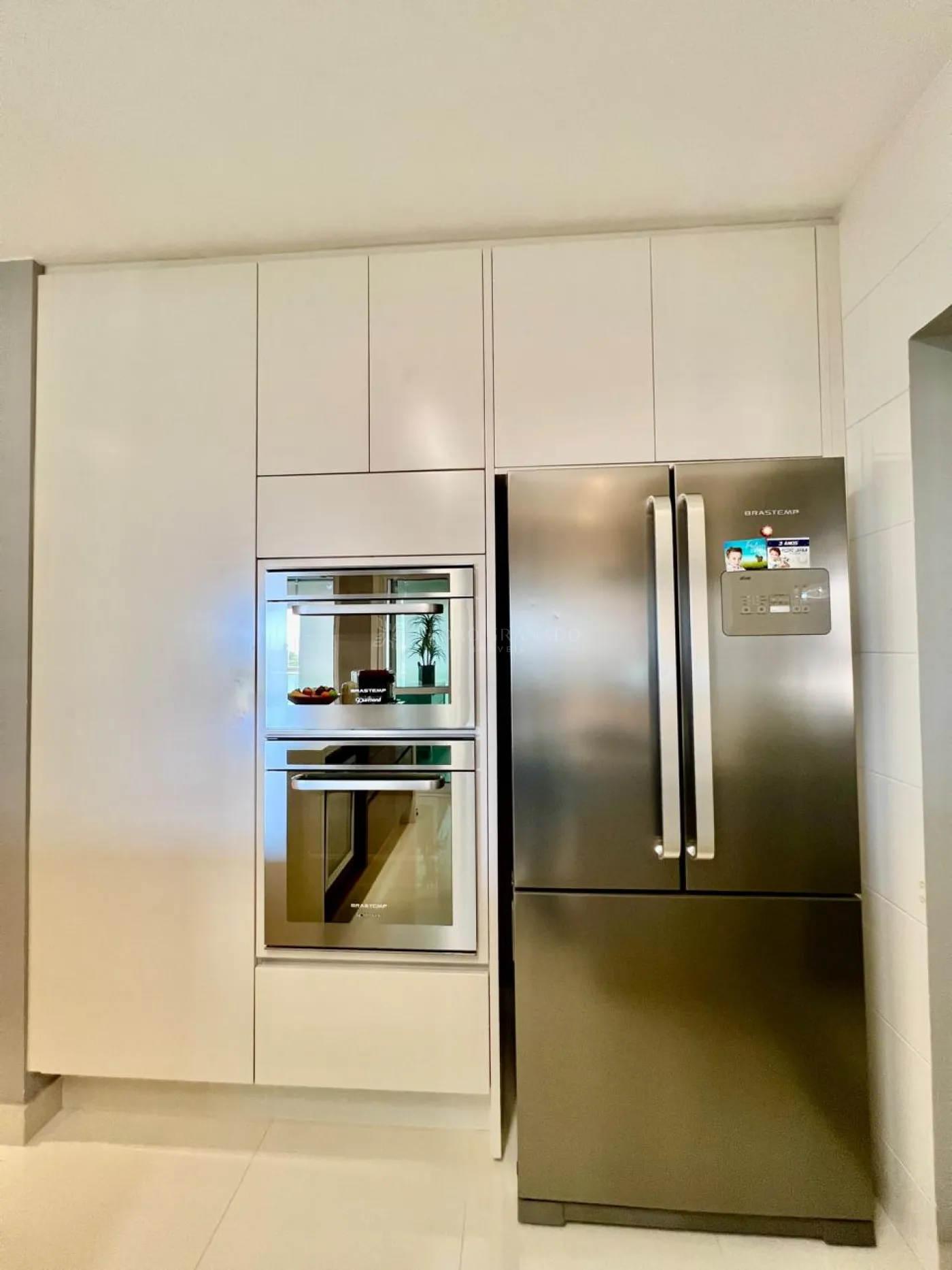 Cozinha Planejada, com móveis planejados, cooktop, coifa, microondas e forno elétrico, geladeira