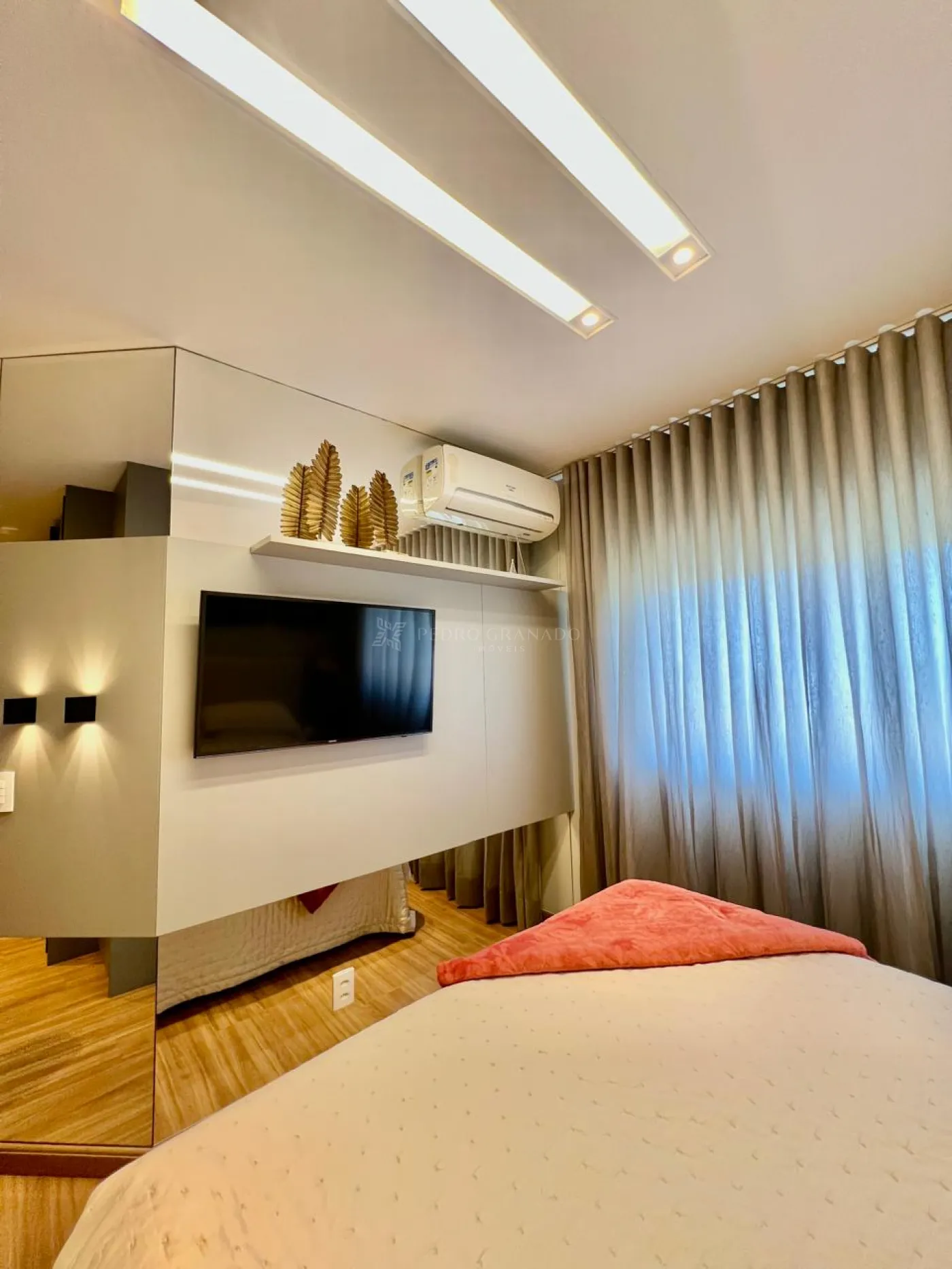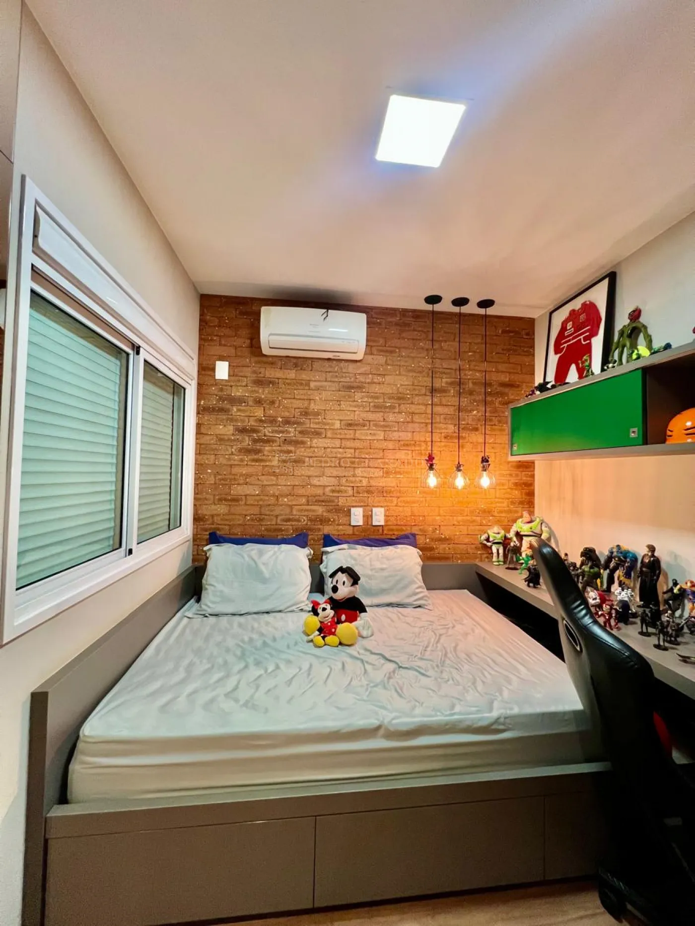 01 Suíte com armários planejados, cama box , persiana automatizada e ar condicionado