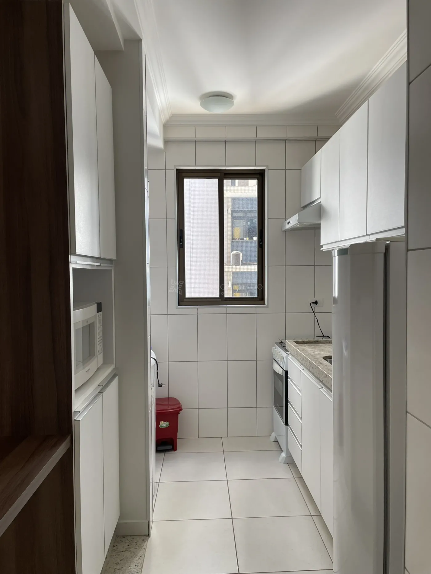 Com uma área útil de 90,00 m², este apartamento conta com uma sala dois ambientes com sofá, painel de TV, mesa com banqueta e sacada, cozinha planejada com geladeira, fogão, depurador e micro-ondas, 01 dormitório com cama e guarda-roupa, banheiro social com armário e box, área de serviço com máquina de lavar e N° vaga de garagem.