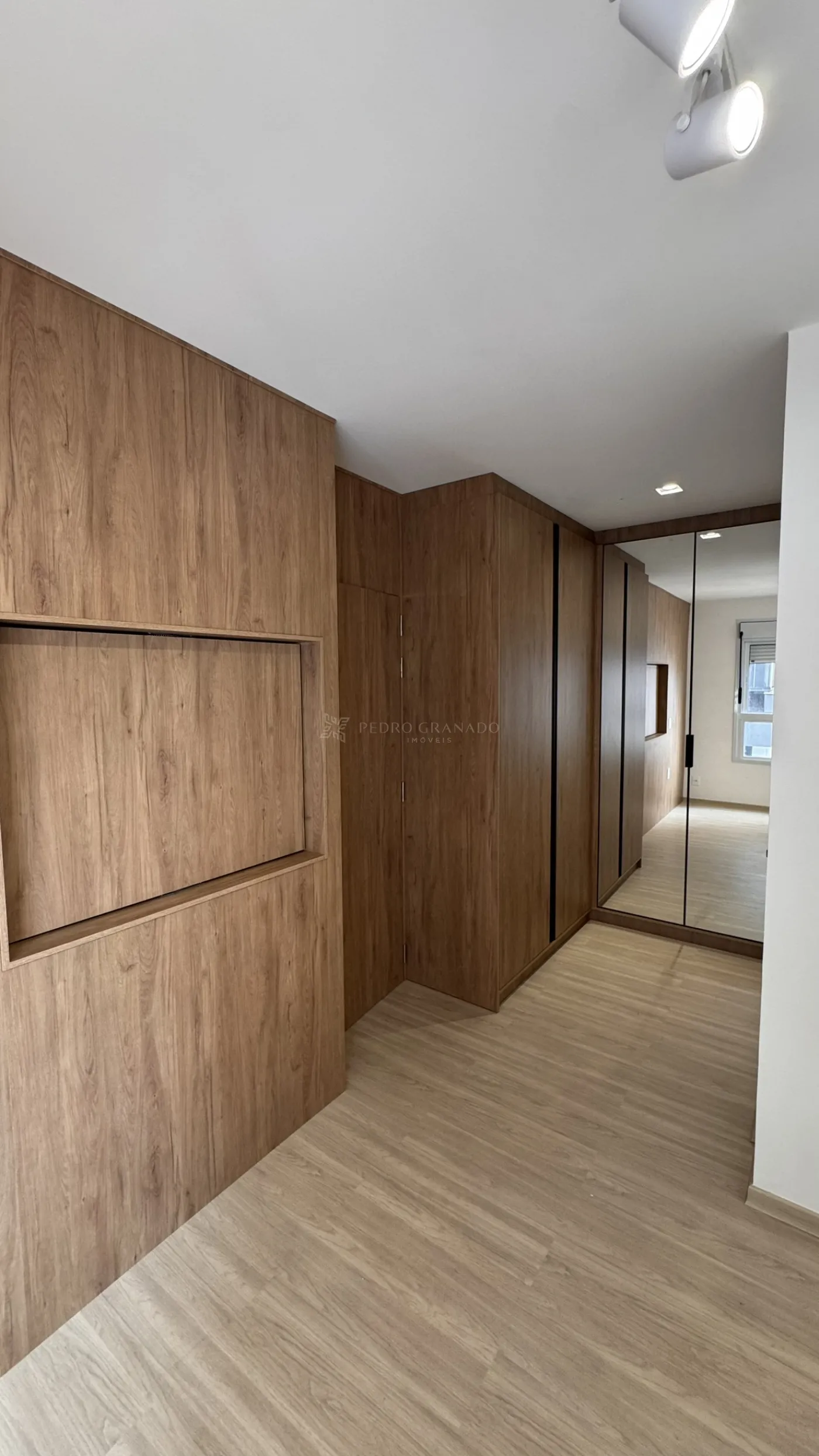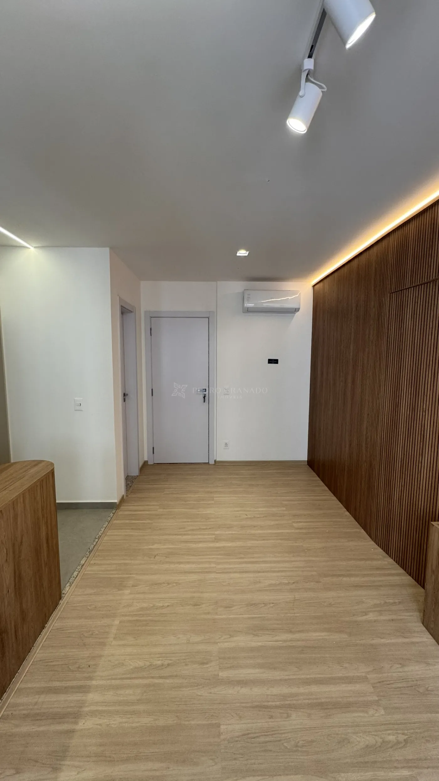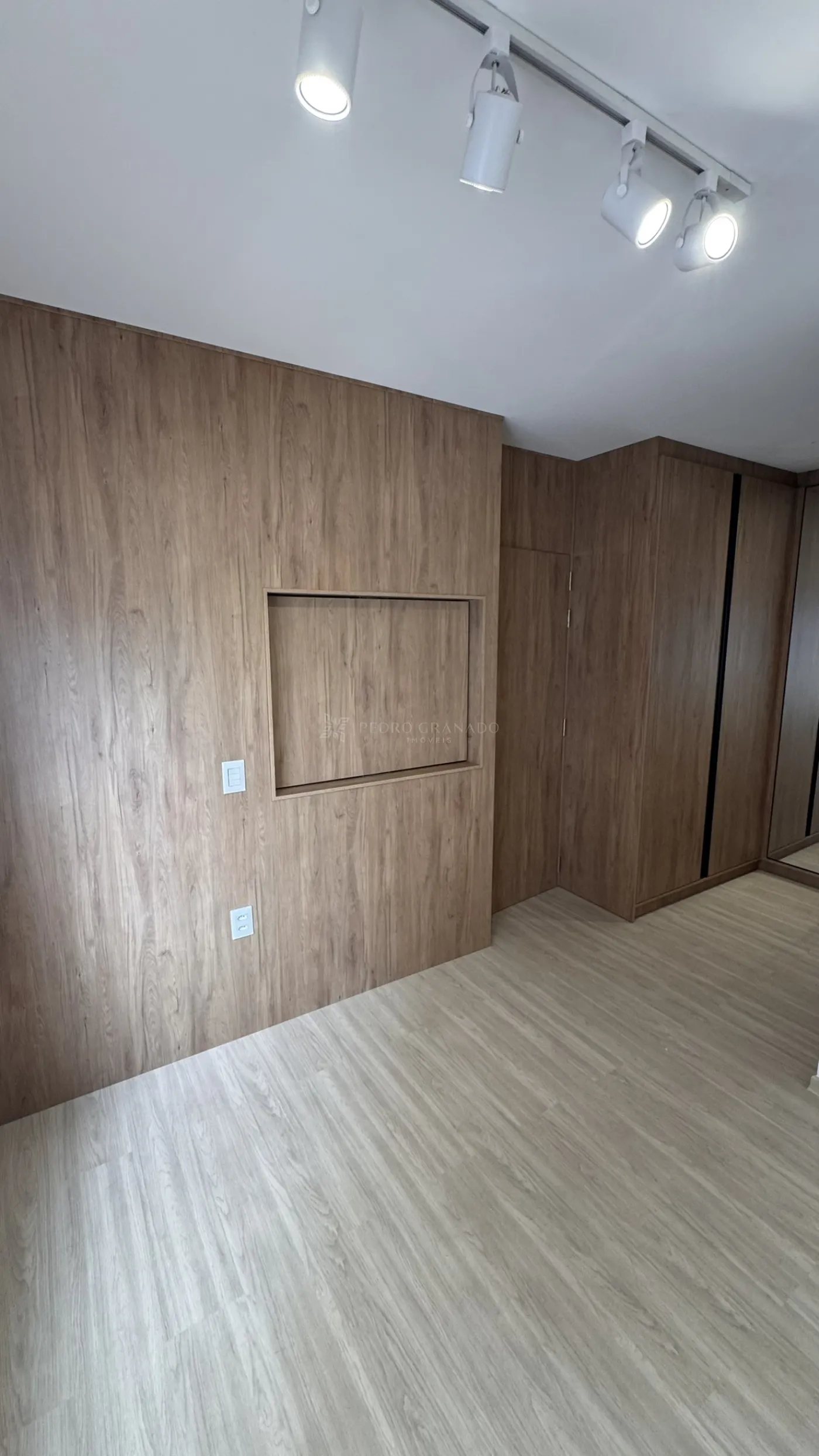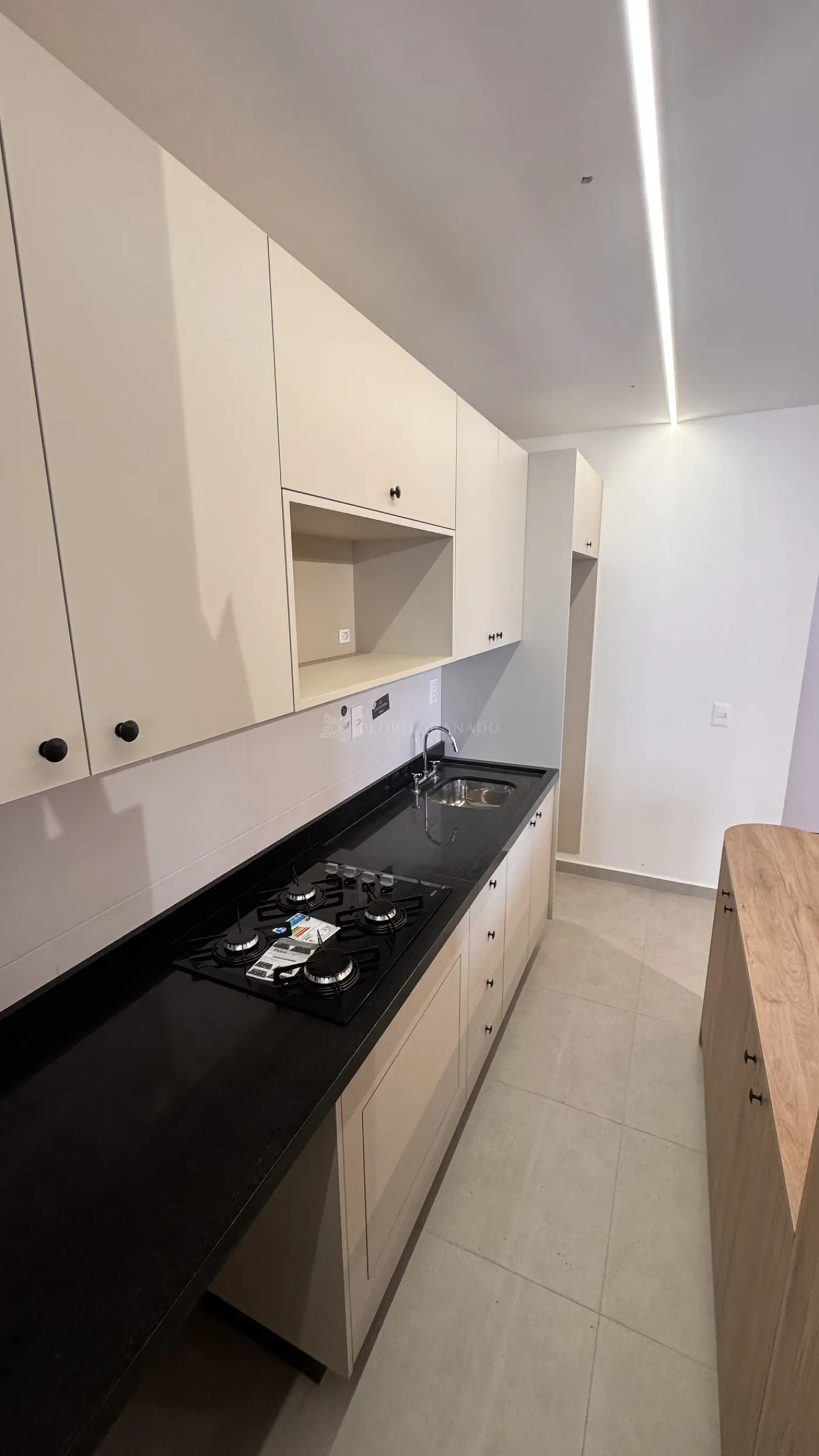 O imóvel conta com cozinha planejada A sala possui painel de TV e iluminação em LED, trazendo modernidade e conforto ao ambiente.