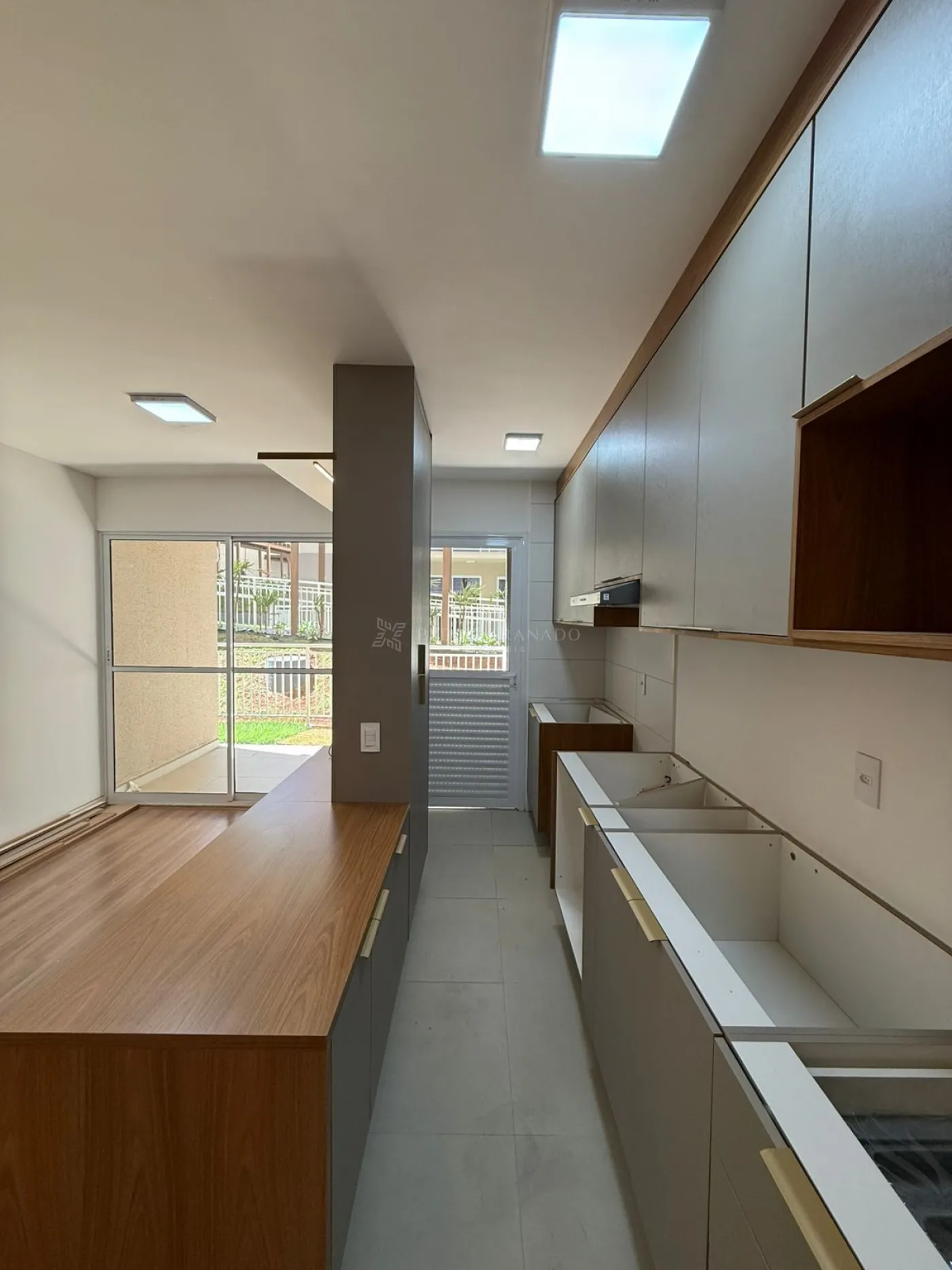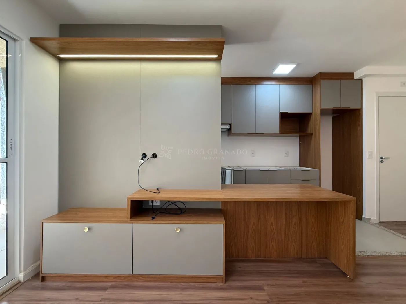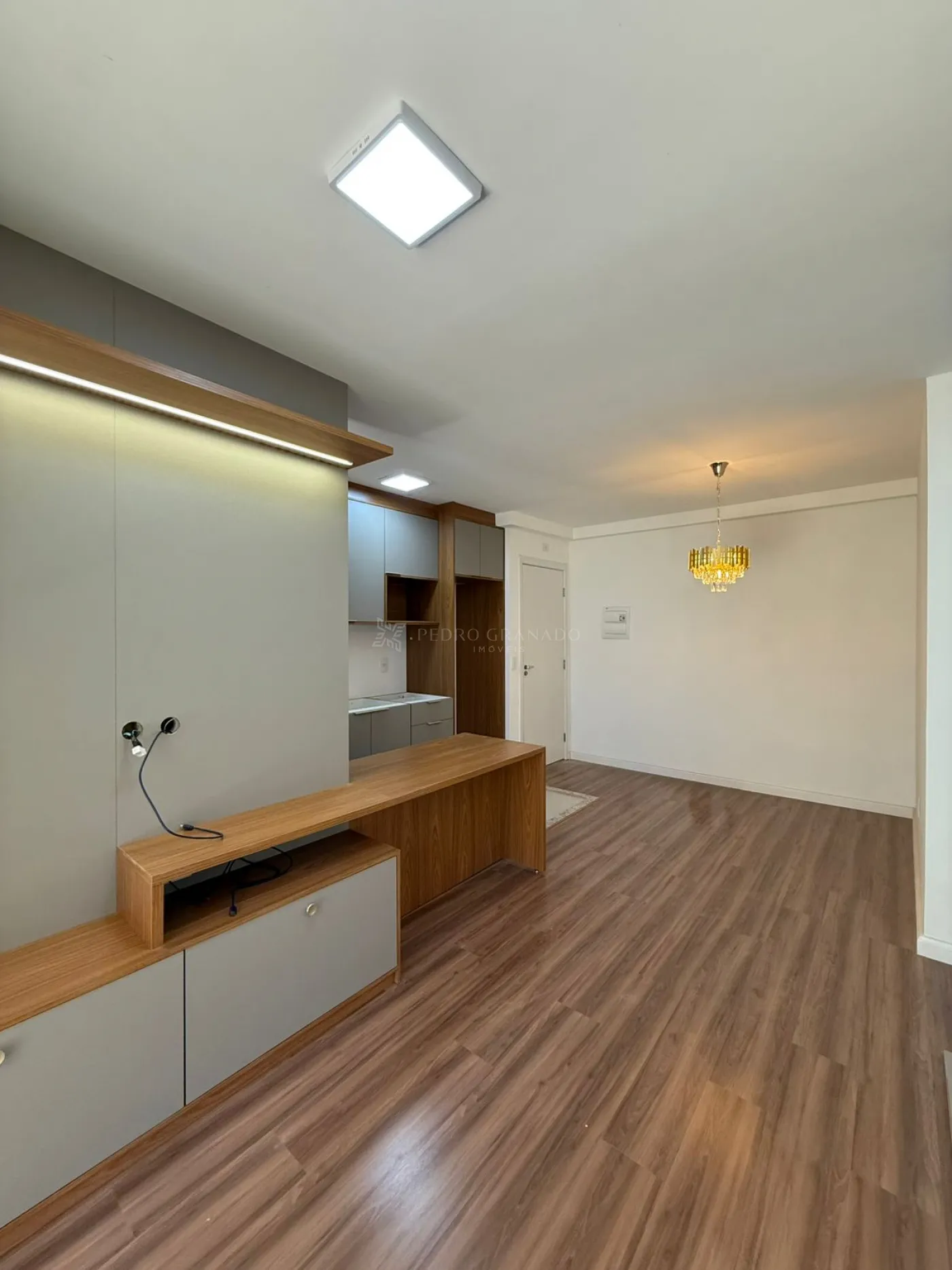 conta com sala dois ambientes, sendo a sala de estar com painel e rack para televisão.