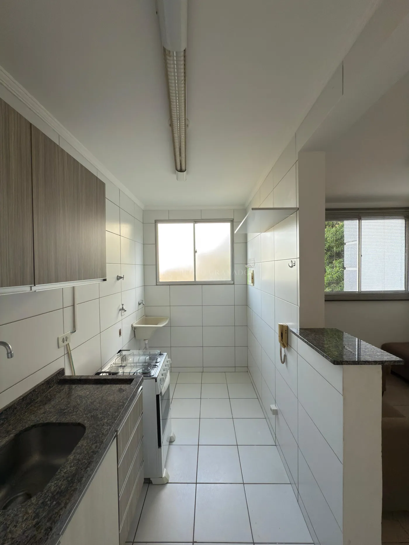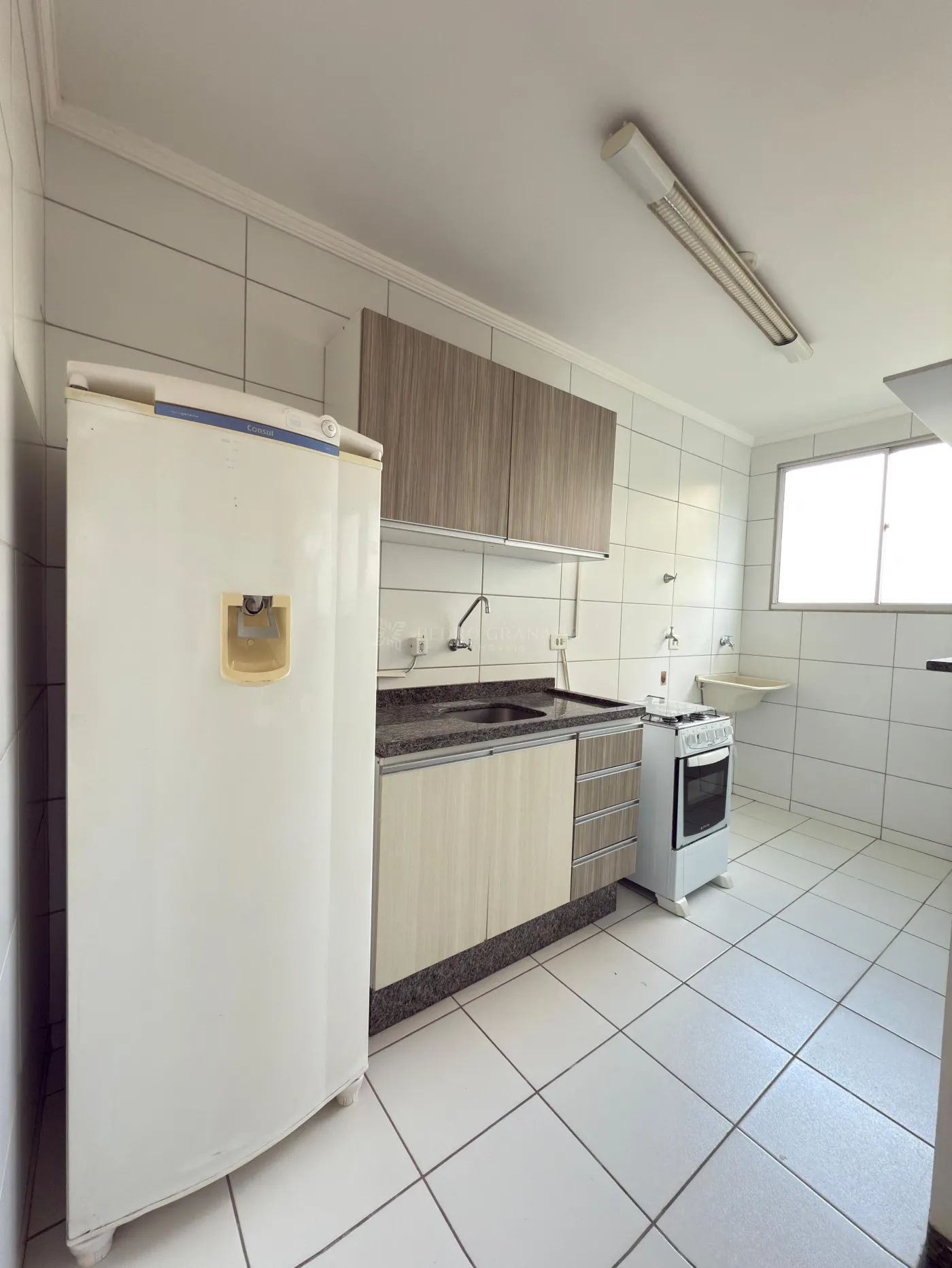 Com uma área útil de 45,00 m², este apartamento conta com sala 02 ambientes com sofá e mesa com 04 lugares, cozinha com armários, geladeira e fogão, 02 dormitórios, sendo 01 com guarda-roupas e 01 dormitório com cama, armário, escrivaninha e ar-condicionado, banheiro social com box blindex, área de serviço com tanque e 01 vaga de garagem.
