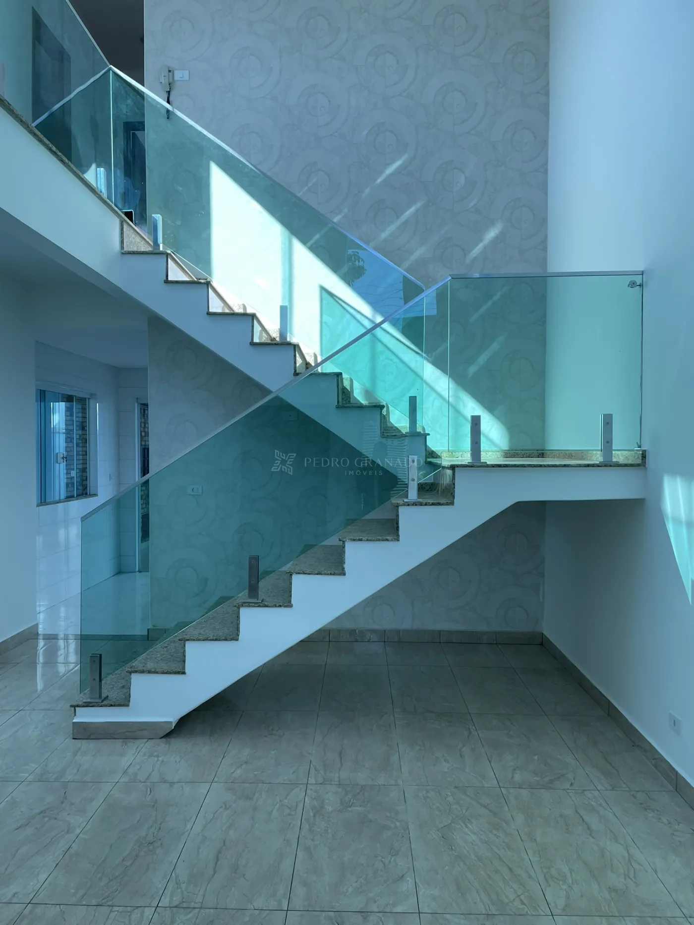 Com uma área útil de 164,68 m², este sobrado conta com sala de estar com pé direito alto e lustres, sala de TV, lavabo com espelho, cozinha planejada