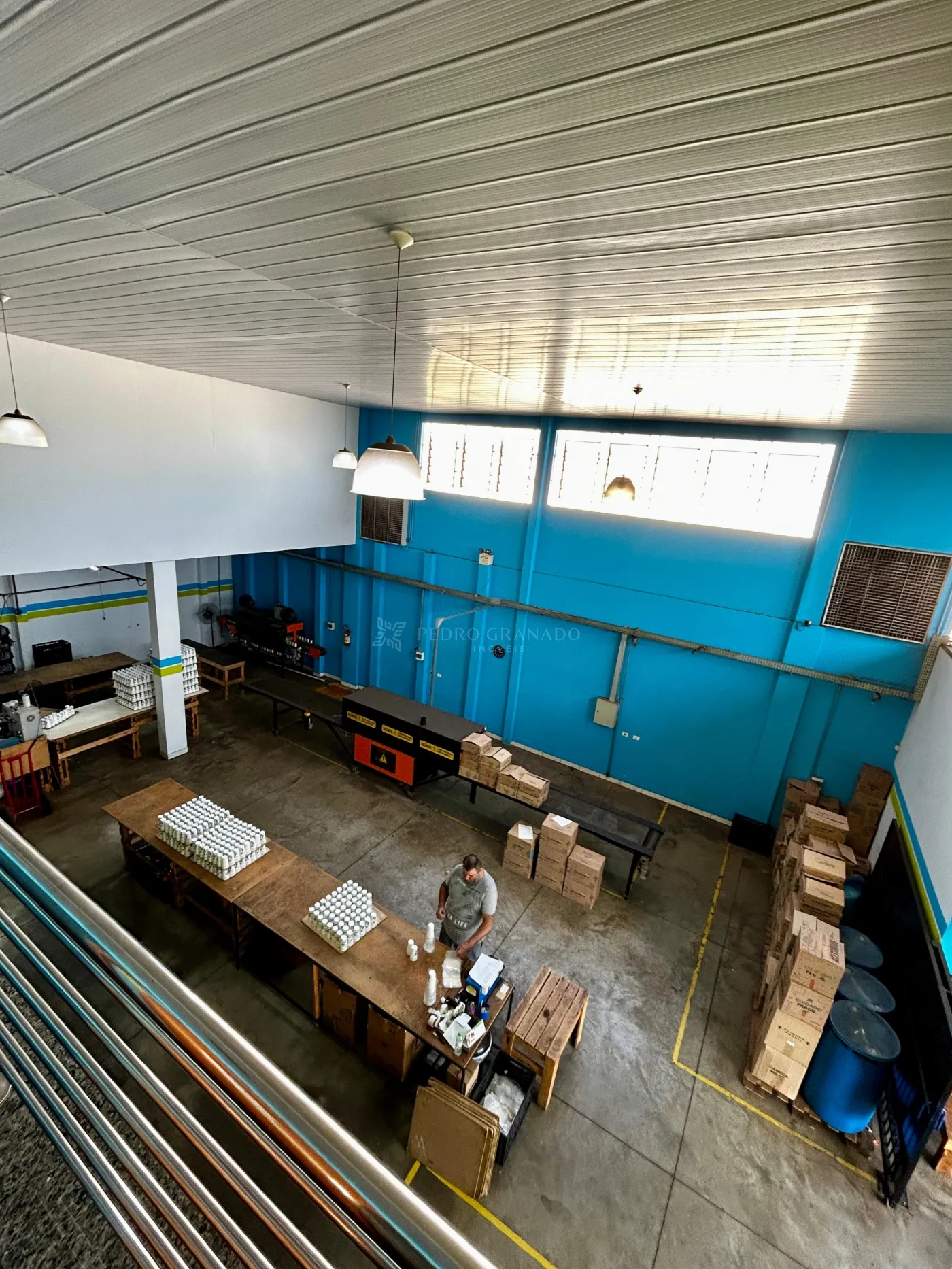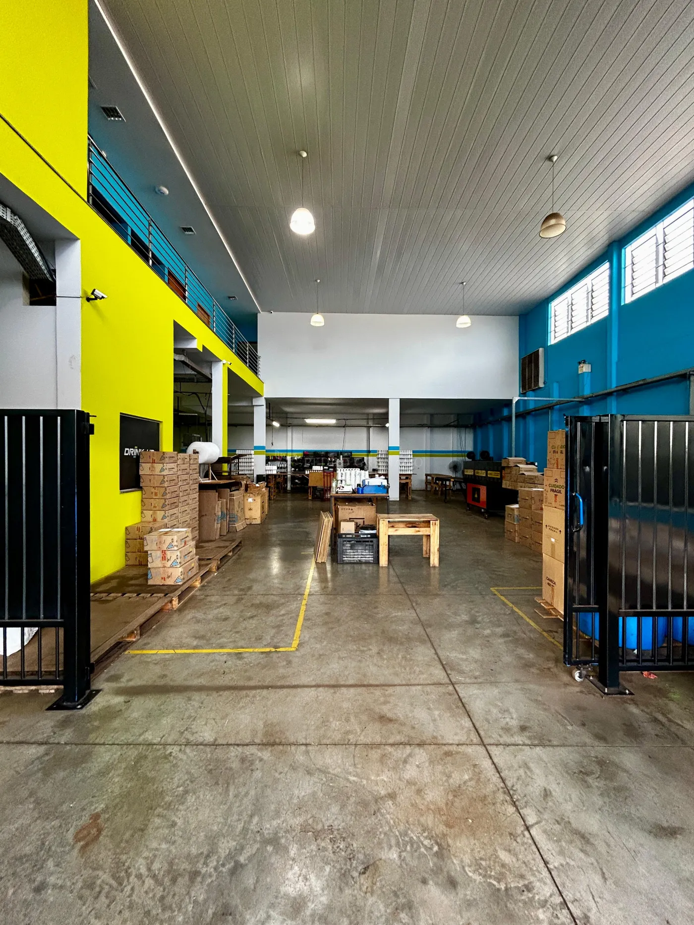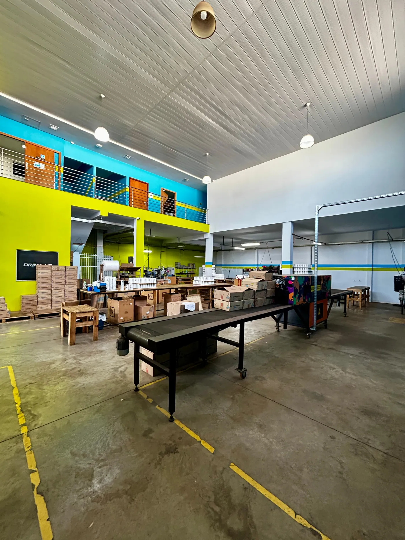 - Térreo com recepção, área de produção e pé direito duplo