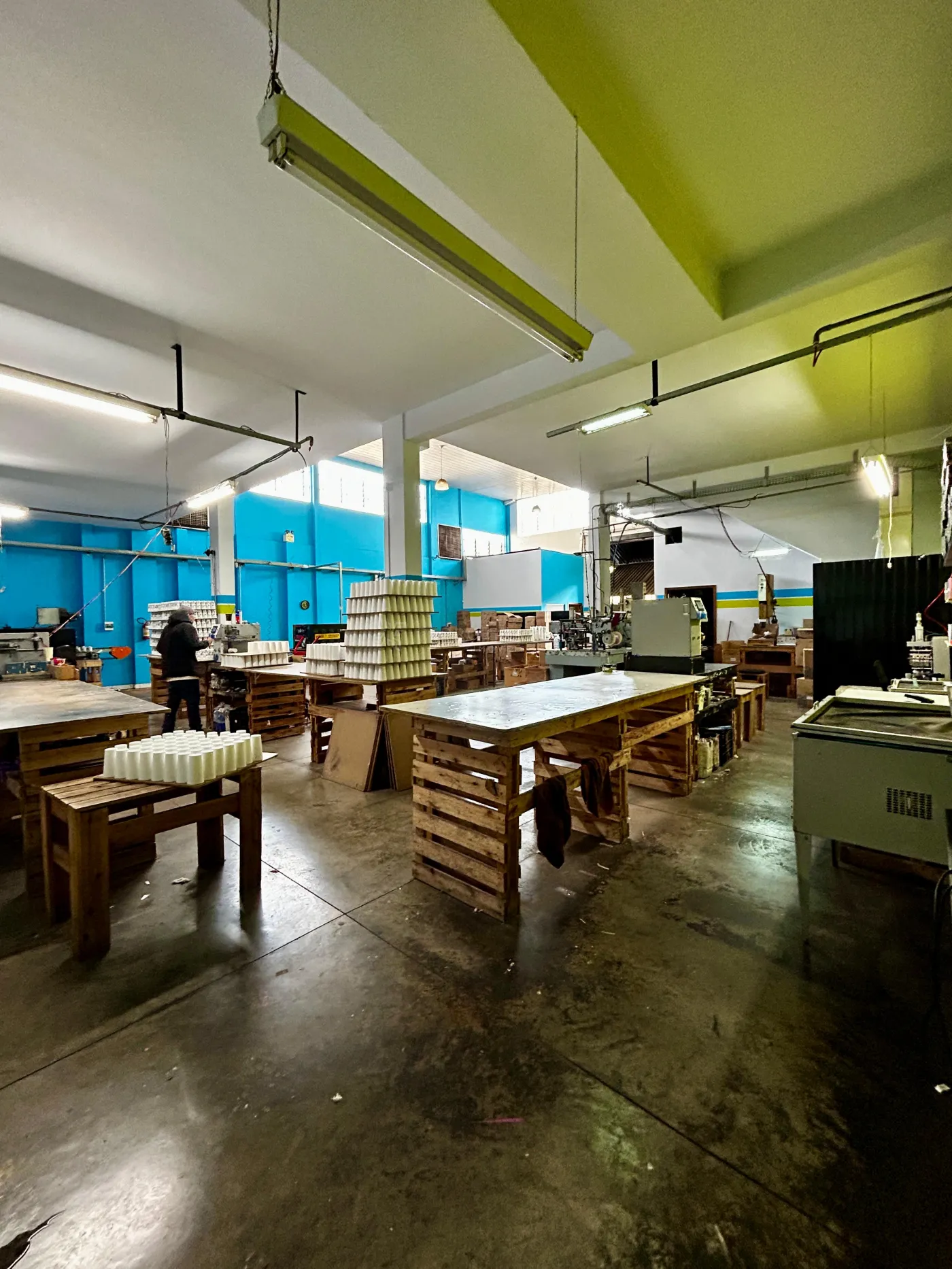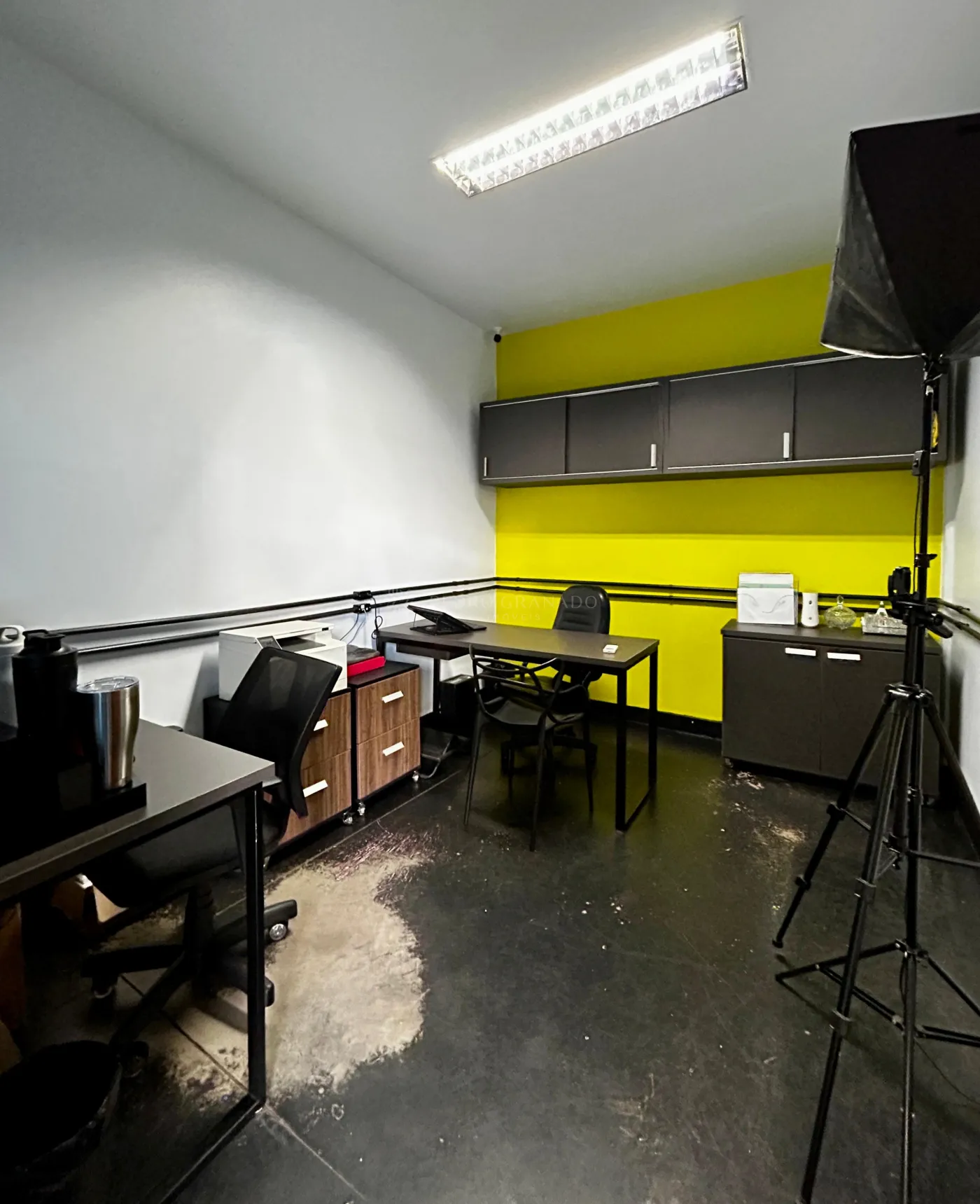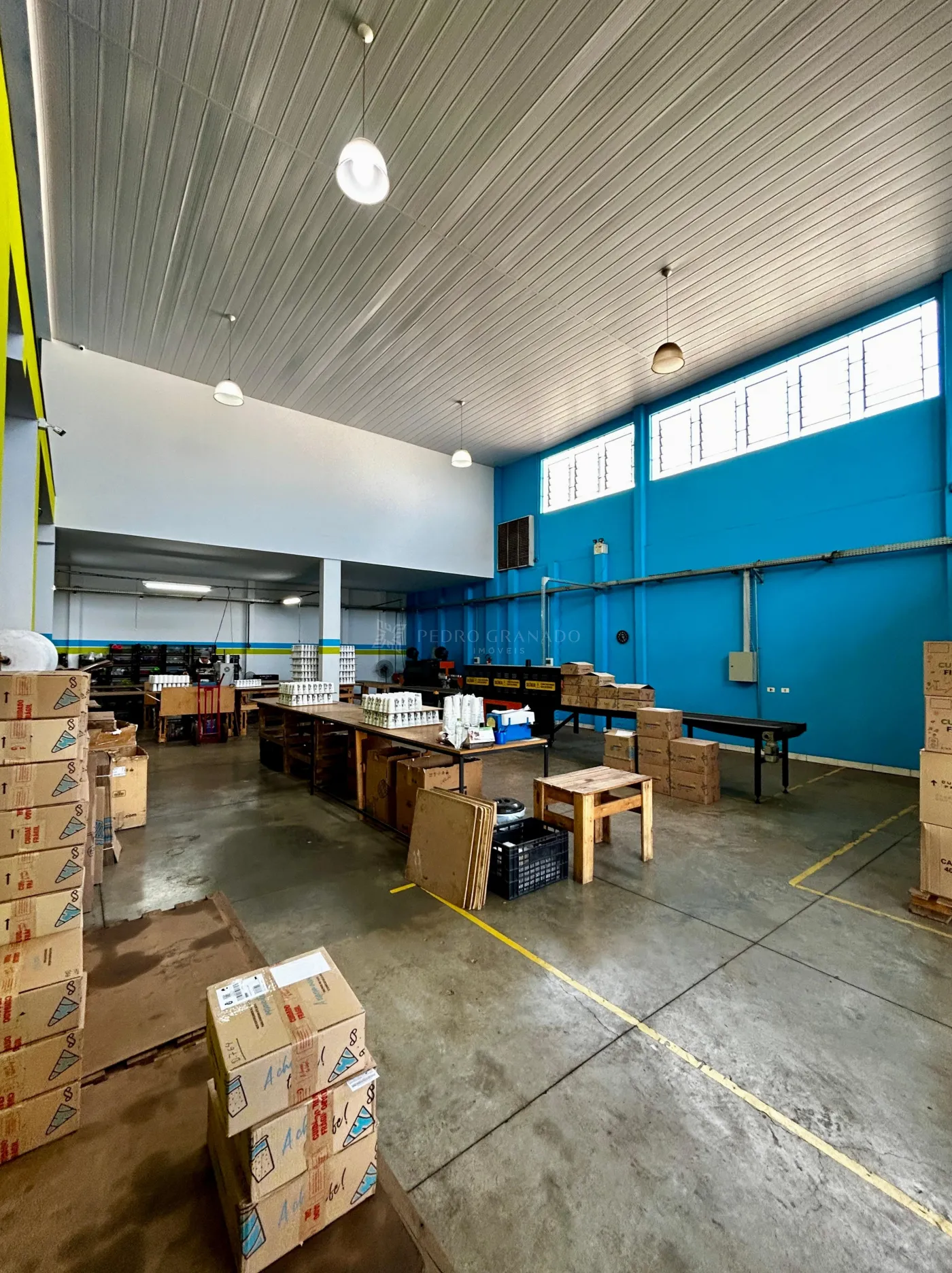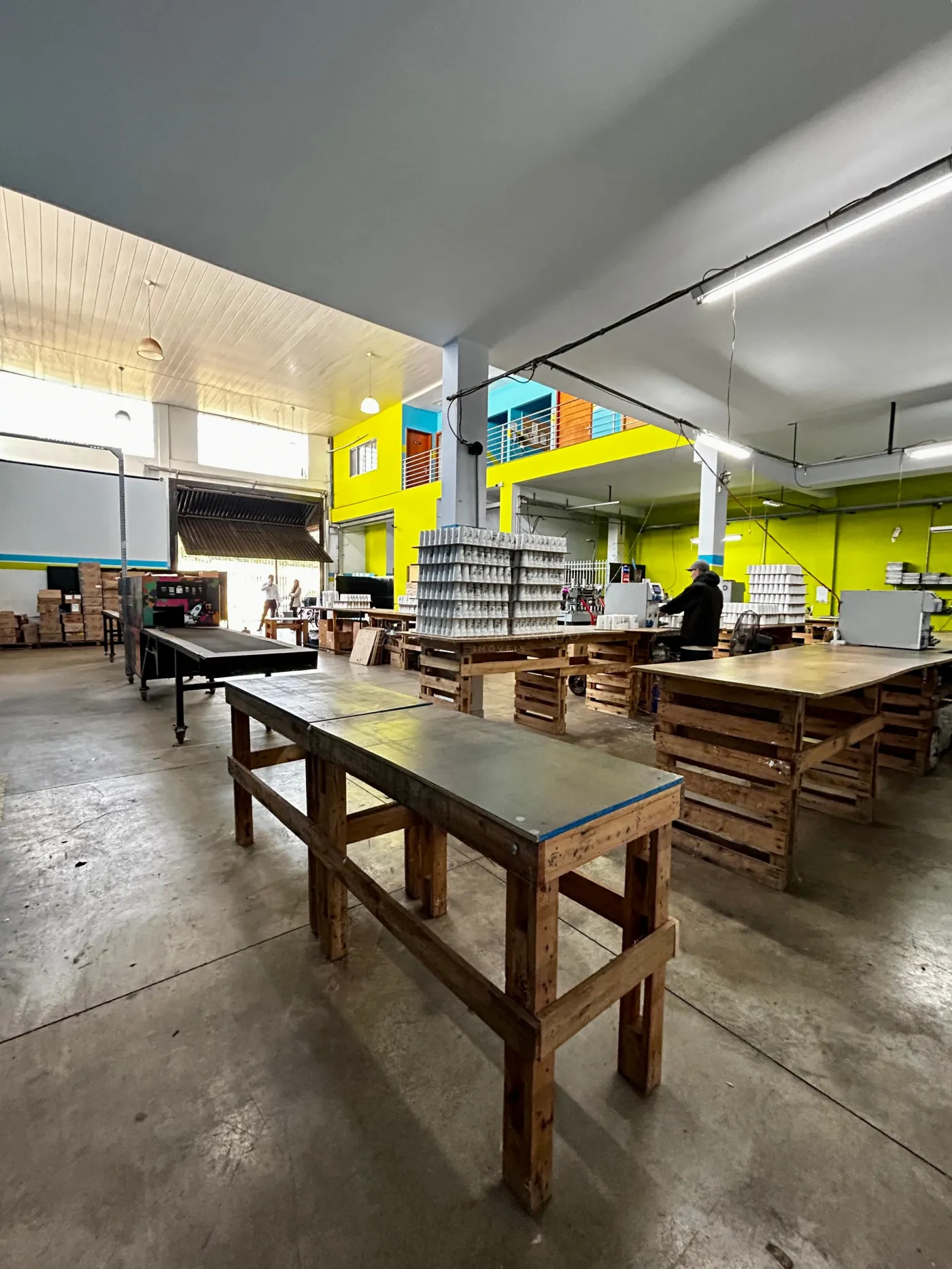 - Térreo com recepção, área de produção e pé direito duplo