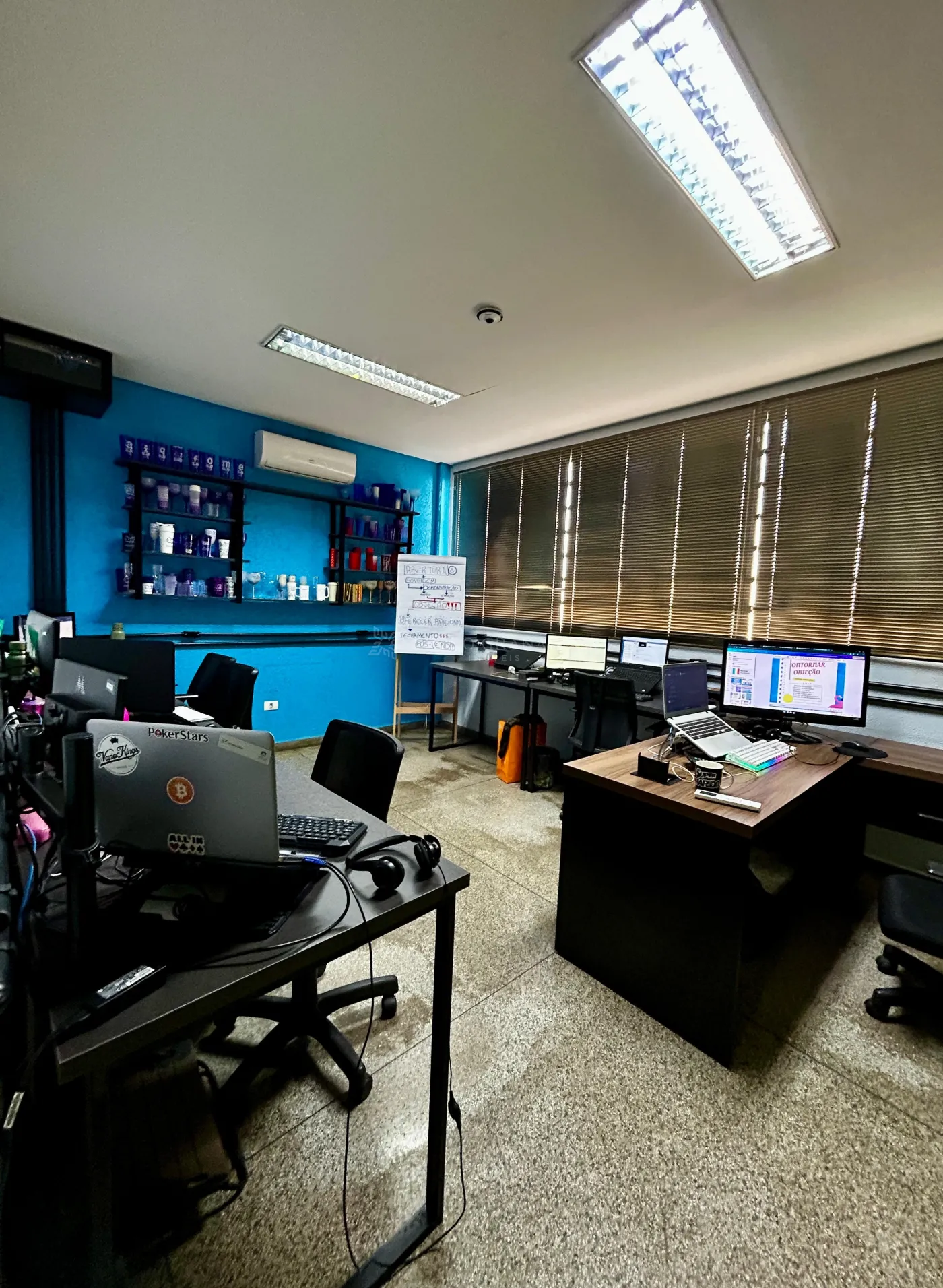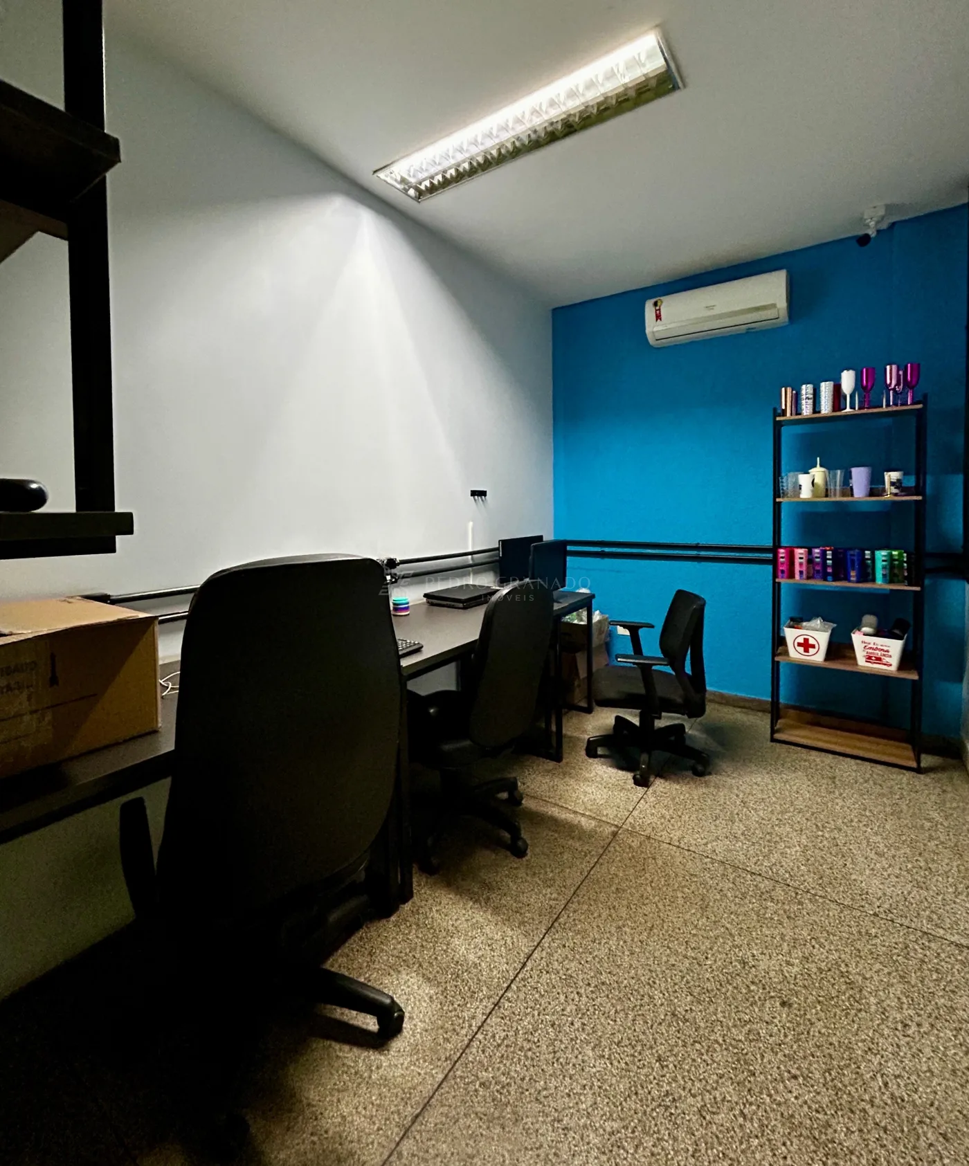 - Mezanino com salas comerciais, reunião, cozinha, refeitório e banheiros individuais