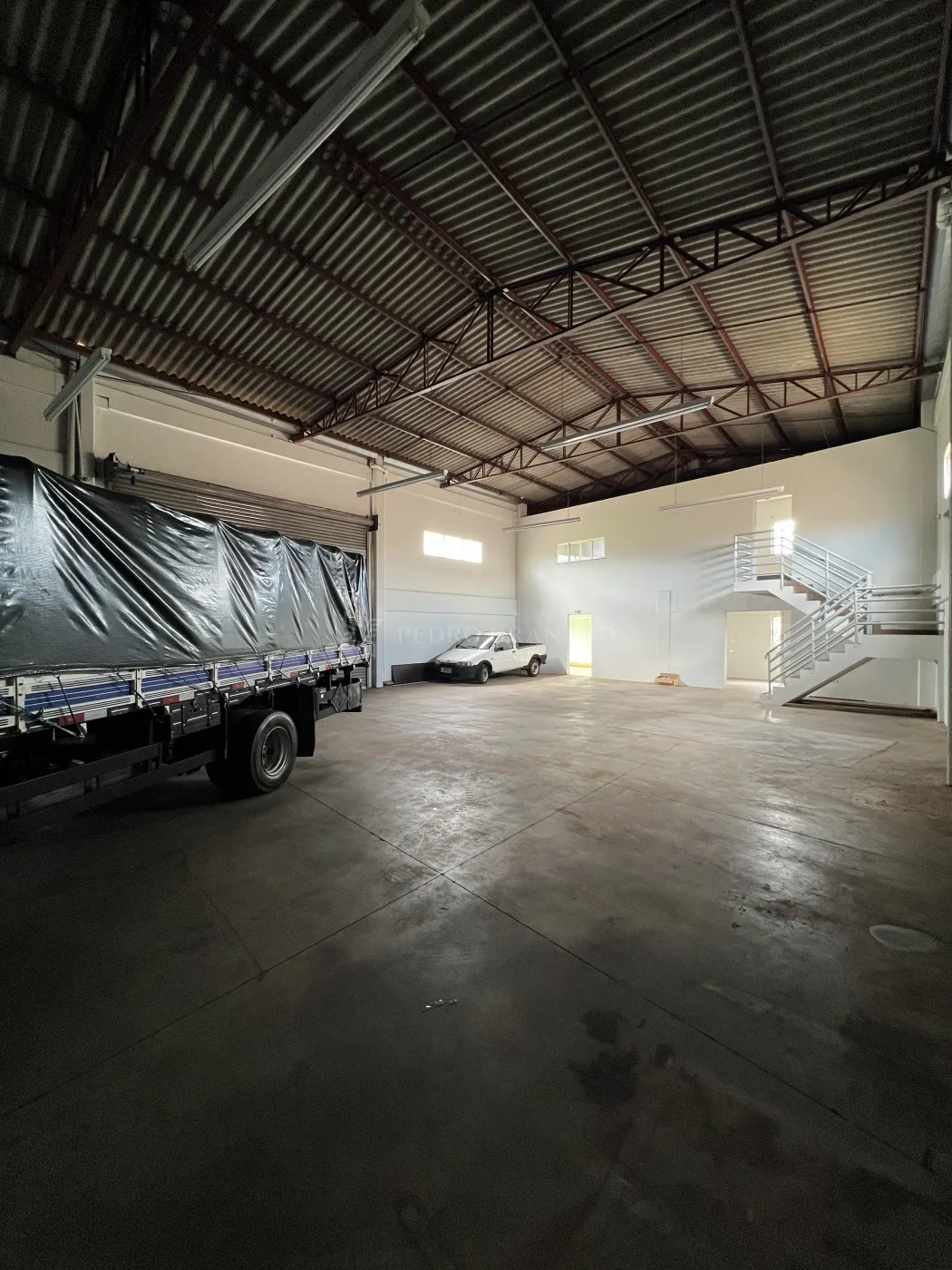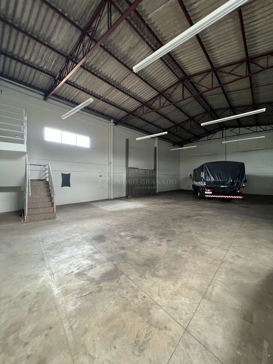 Este barracão é ideal para quem busca um espaço amplo e bem distribuído. Possui estrutura completa, com banheiros privativos e pé-direito alto.