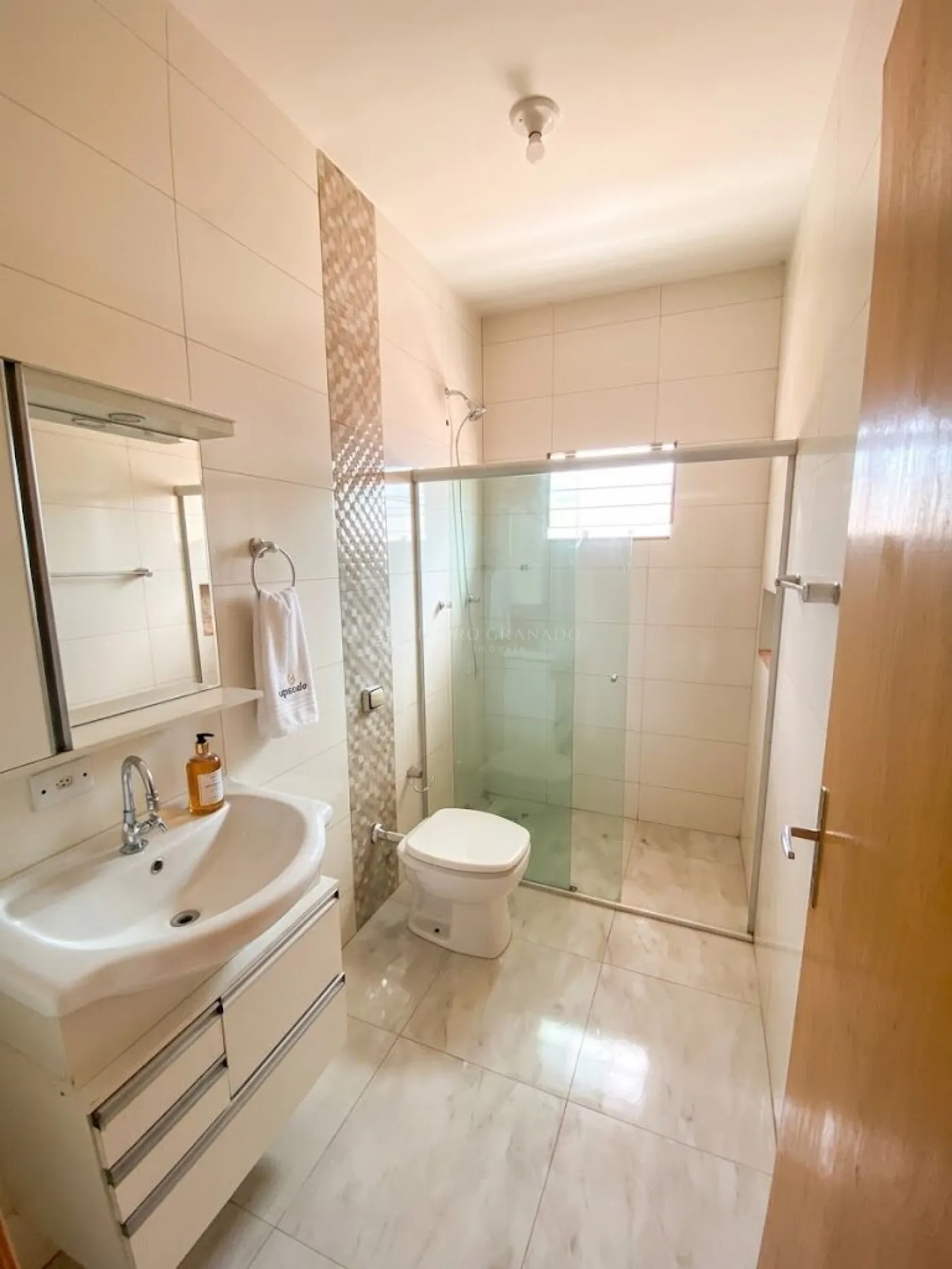 * Banheiro com móveis planejados, box em Blindex e acabamentos modernos.