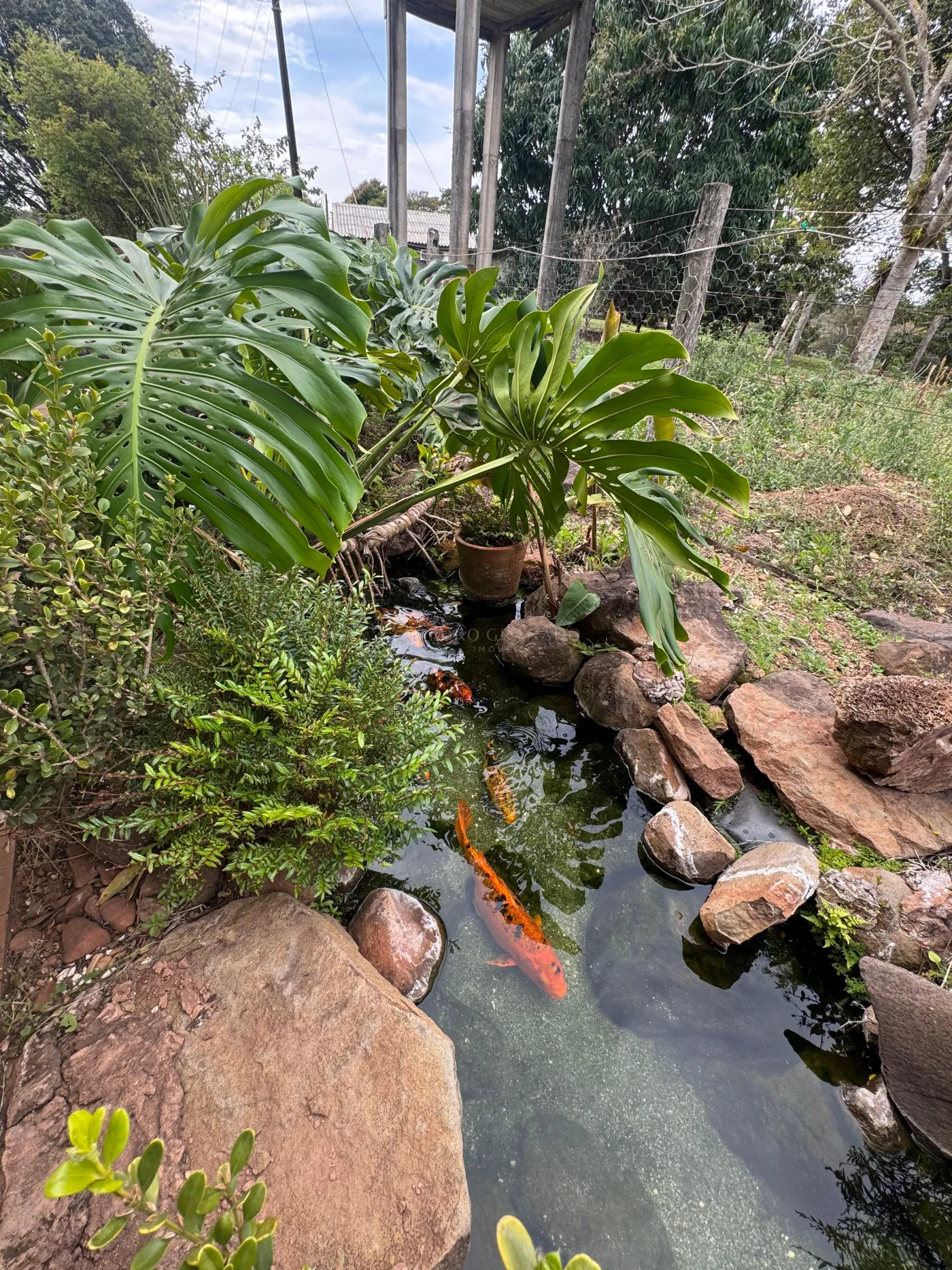 - Lago com peixes, perfeito para momentos de descanso e lazer;