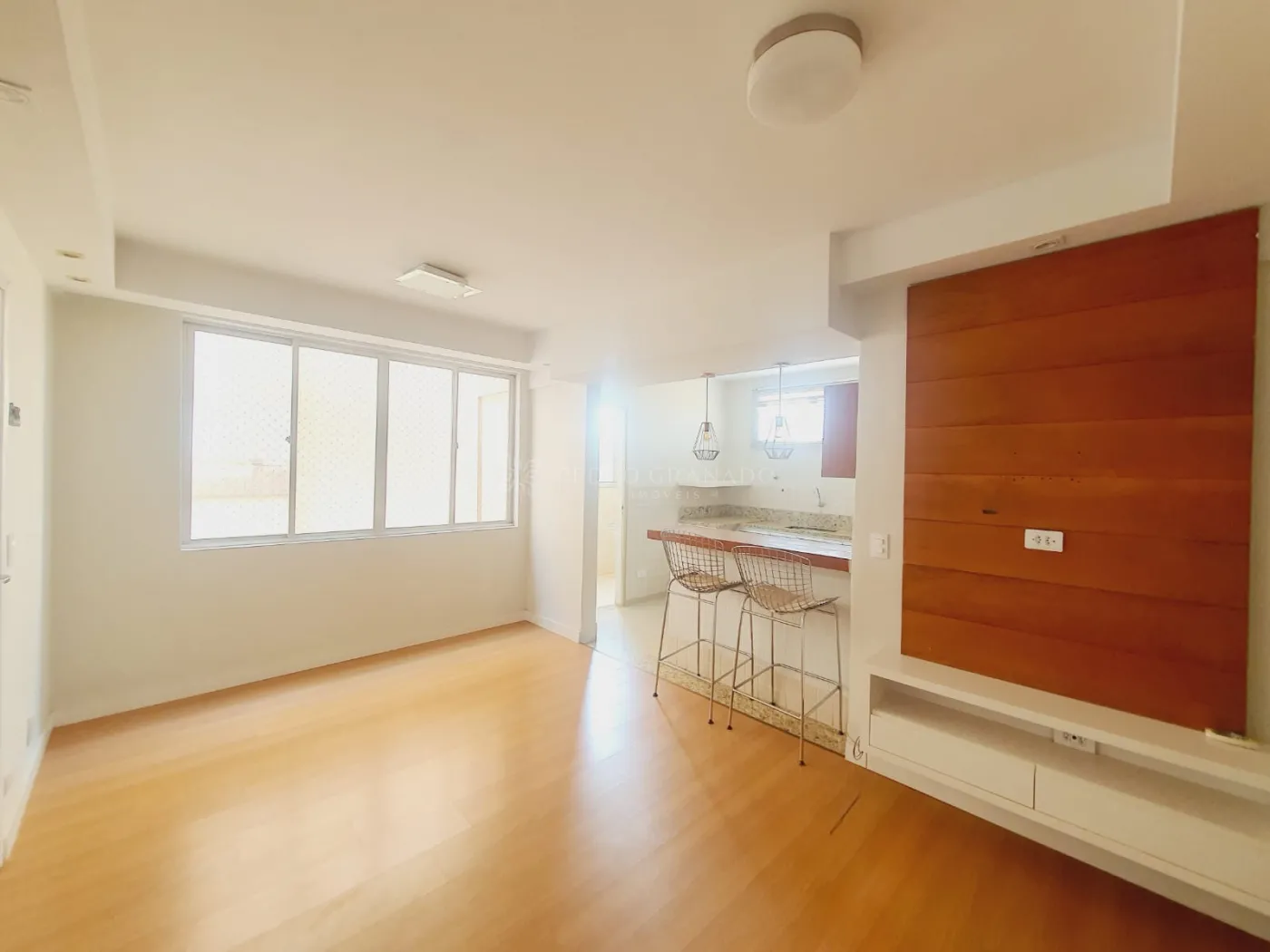 Apartamento posição frente, com três dormitórios sendo um deles com ar condicionado, sala de estar e jantar integradas, banheiro social, cozinha com planejados, projeto de iluminação, painel na sala, área de serviço separada e uma vaga de garagem privativa coberta.