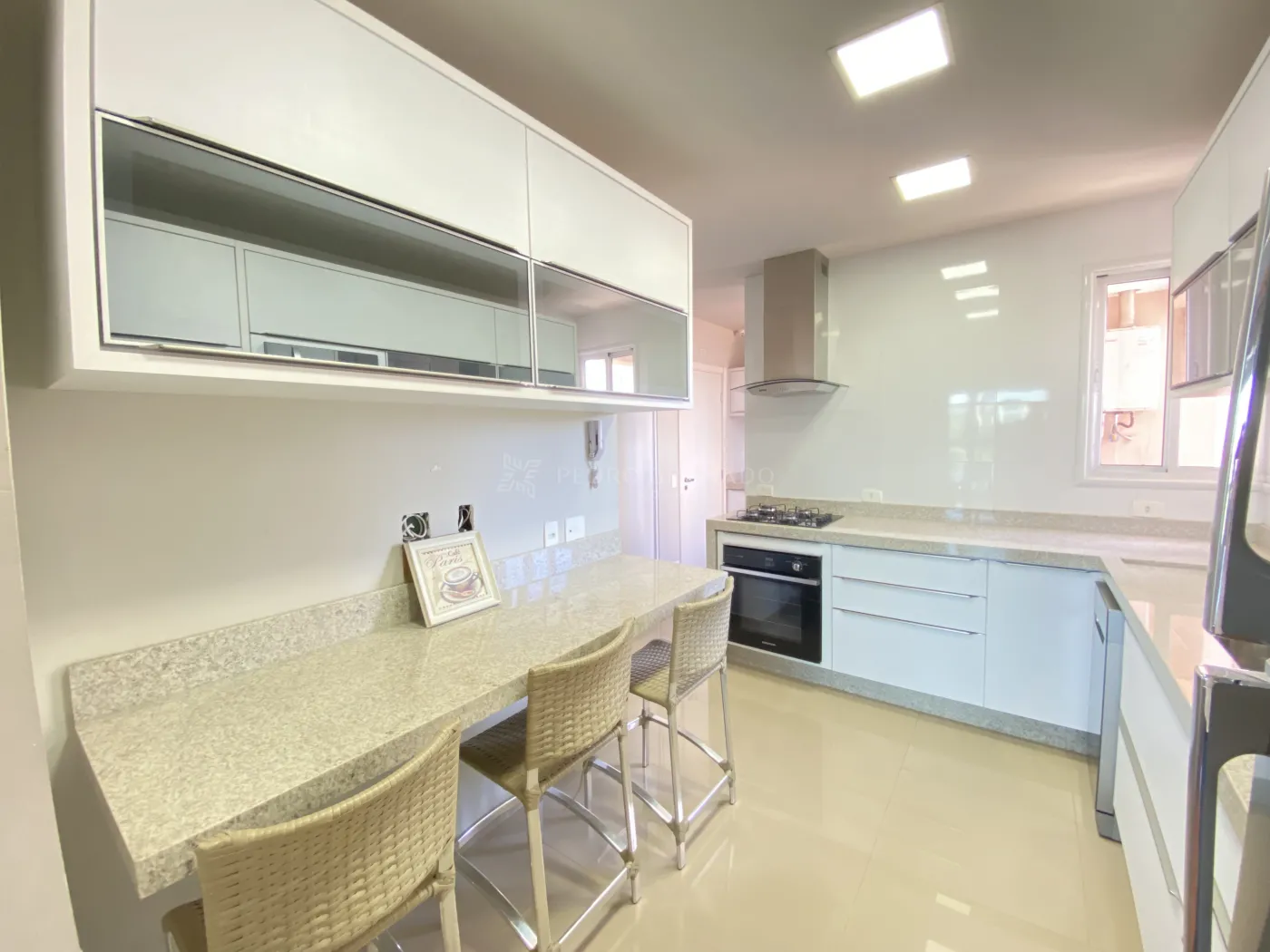 * Cozinha gourmet: Totalmente planejada, incluindo pia, geladeira, micro-ondas, forno elétrico, depurador de ar e freezer.