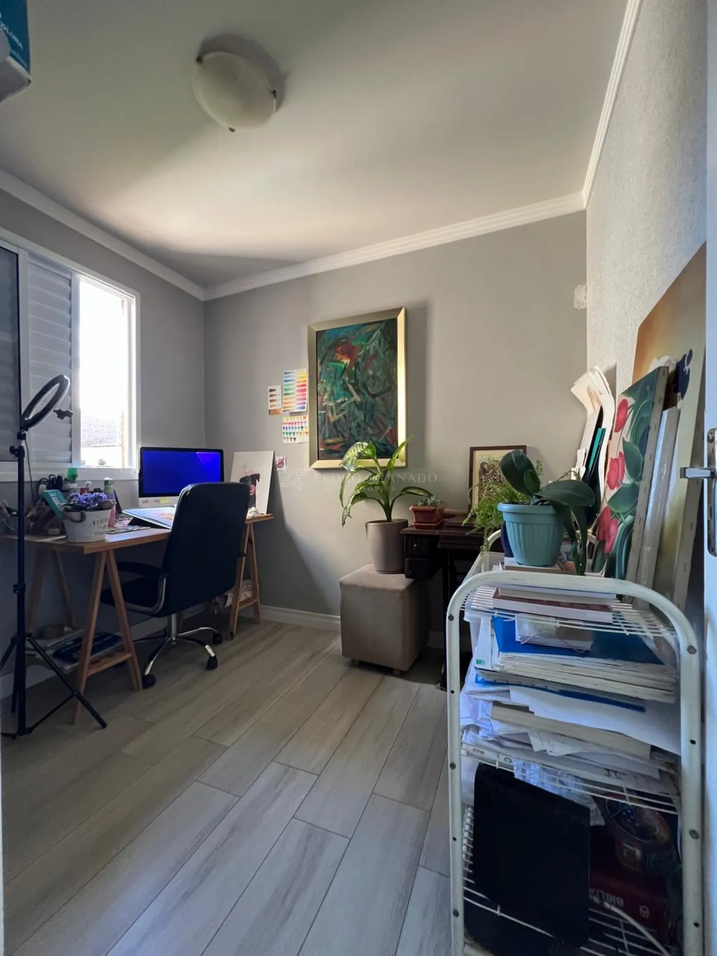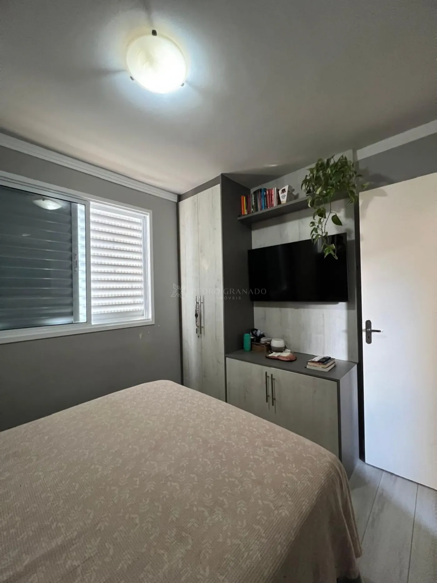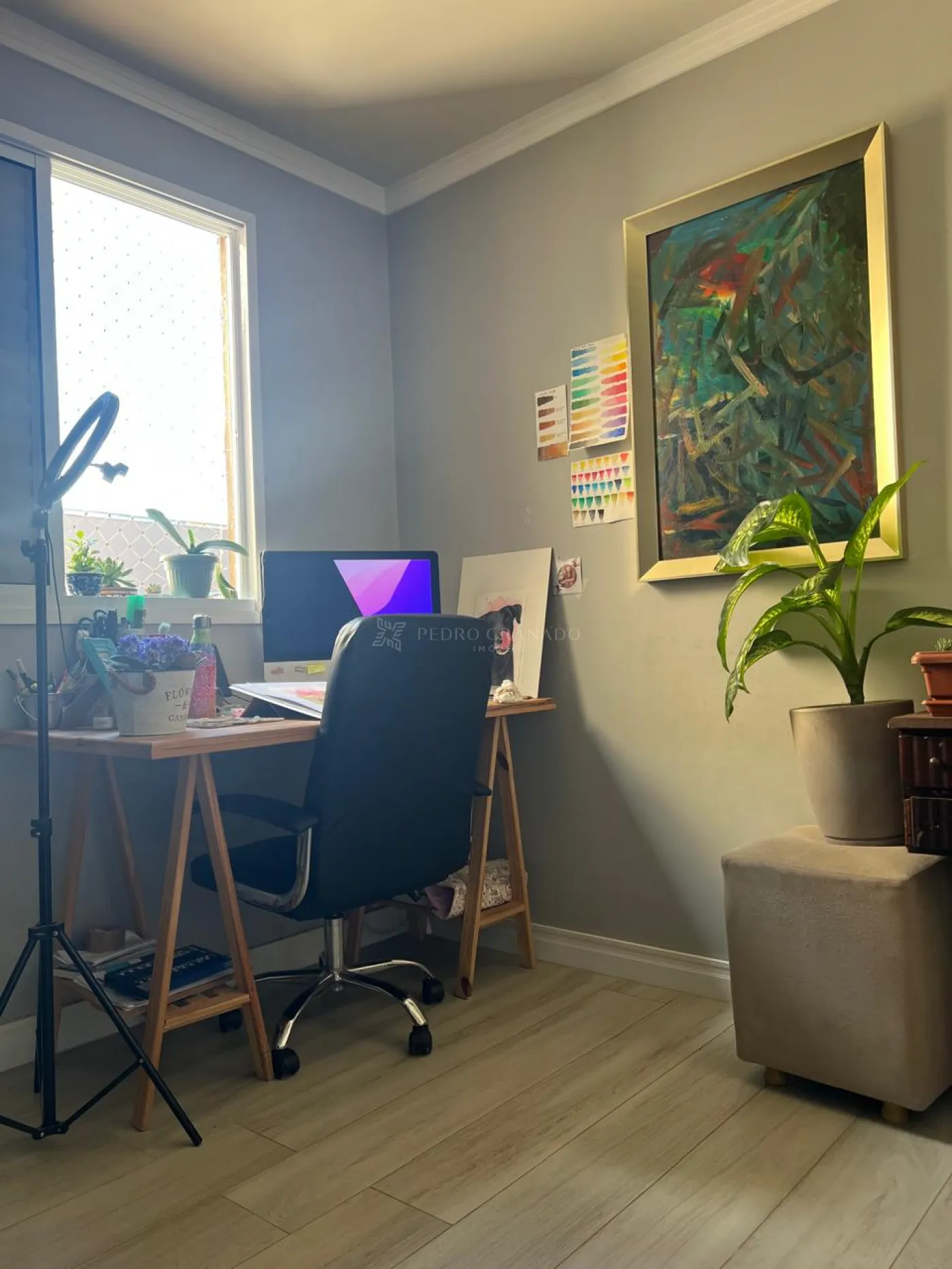 Apartamento com 03 dormitórios sendo o do casal com armário planejados e ar condicionado, segundo dormitório com armário e uma prateleira planejada e terceiro dormitório está sendo usado como escritório, sala, cozinha com armário e lavanderia com boa ventilação e claridade.
