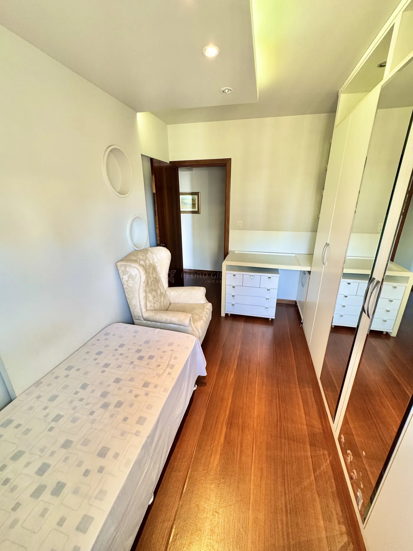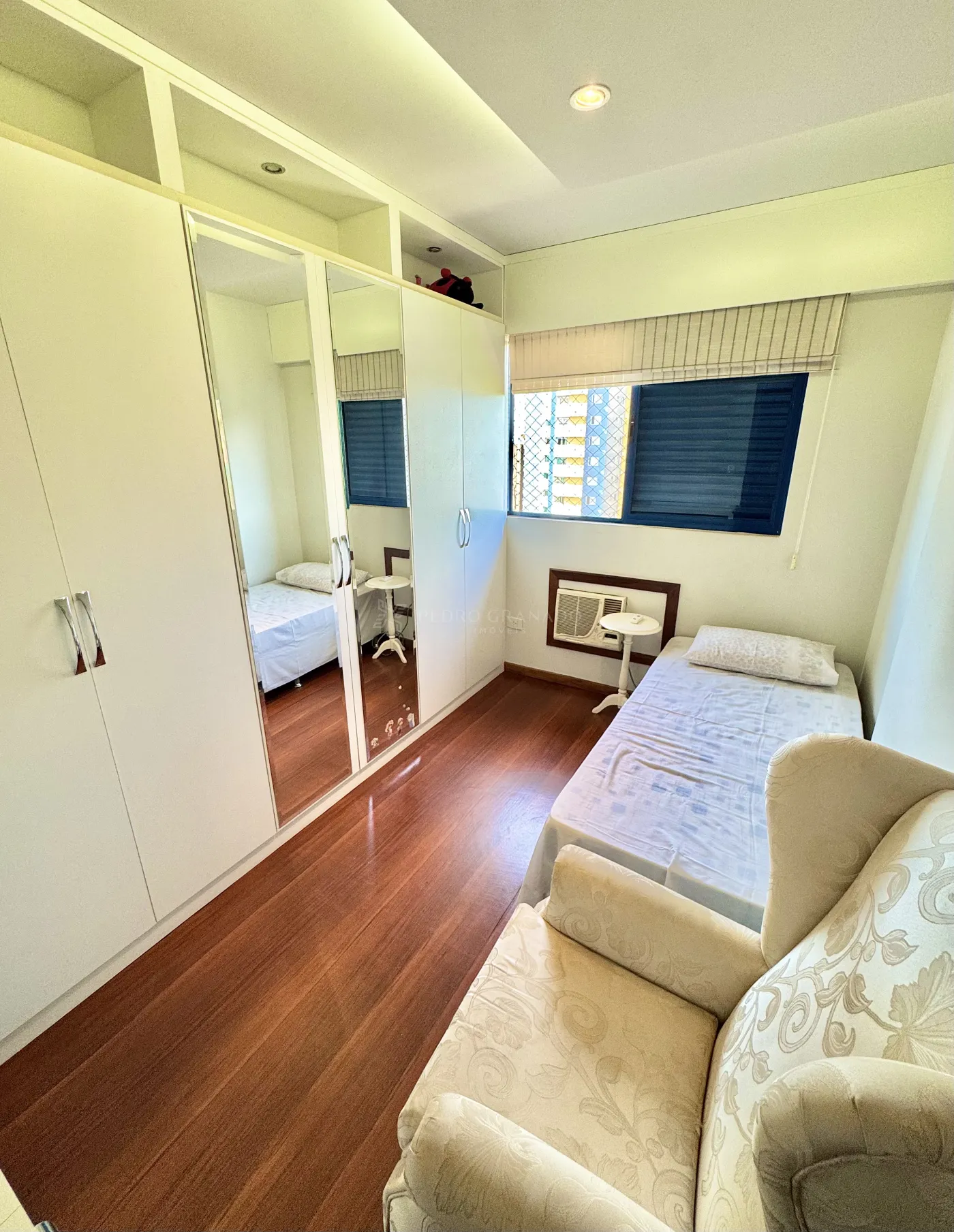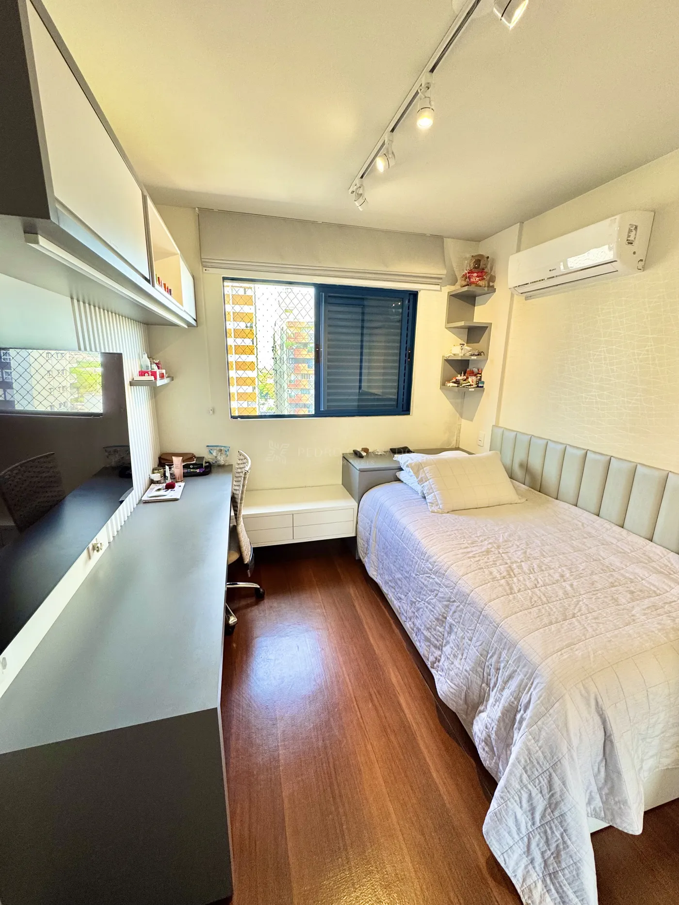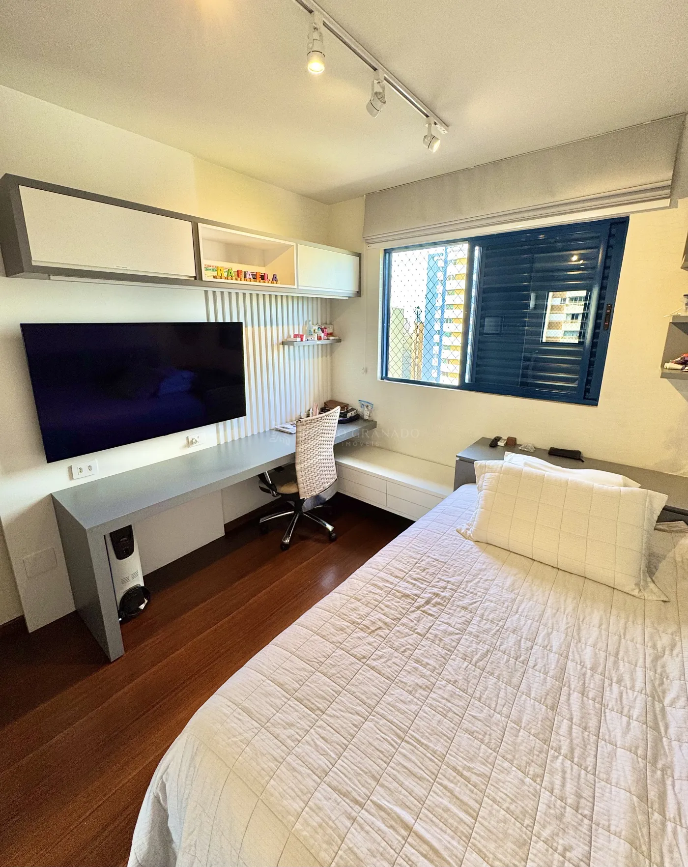 O apartamento possui 3 quartos sendo 1 suíte, cozinha, sala de tv e jantar integradas, lavanderia e um quarto/escritório no fundo do apartamento e banheiro funcionária.