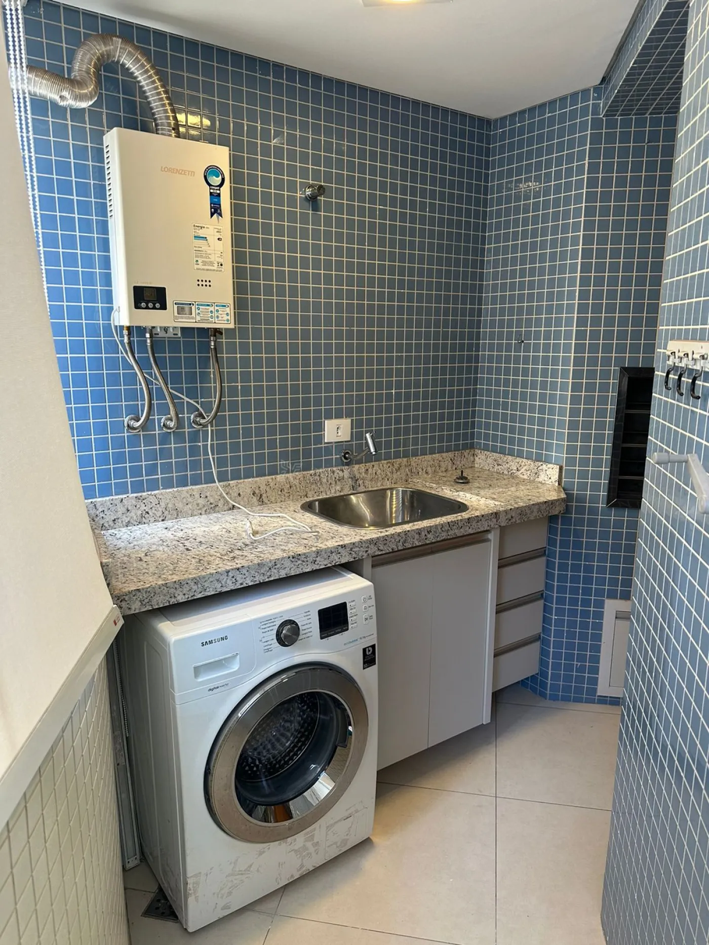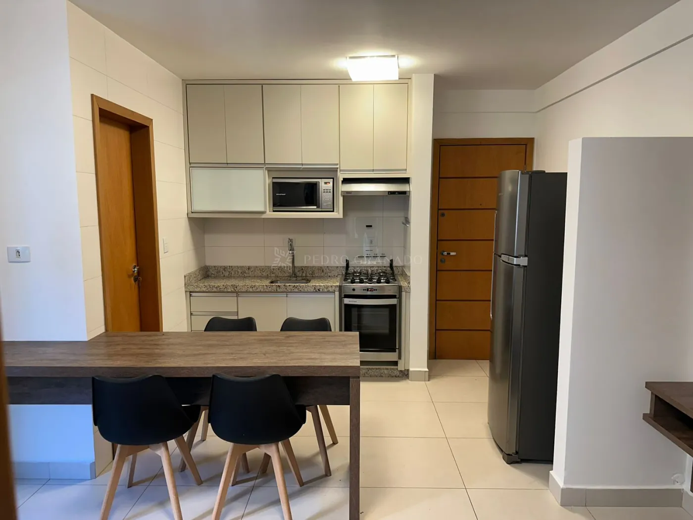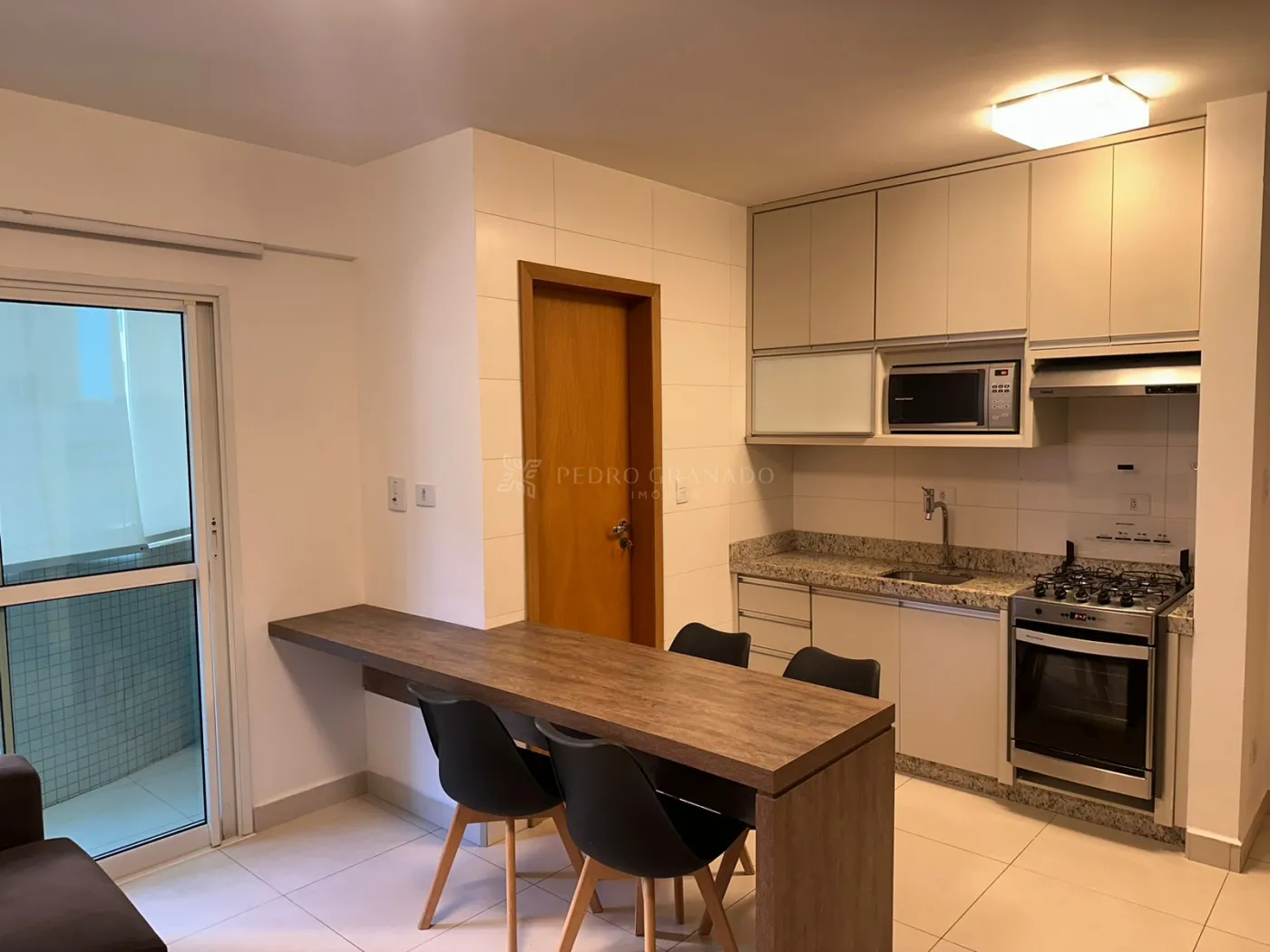 Com uma área útil de 41,25 m², este apartamento conta com sala de estar com sofá, painel de TV, sacada com churrasqueira, cozinha planejada com fogão, forno, geladeira e depurador, 01 suíte planejada com ar-condicionado, base para cama de casal e sacada, área de serviço e 01 vaga de garagem.