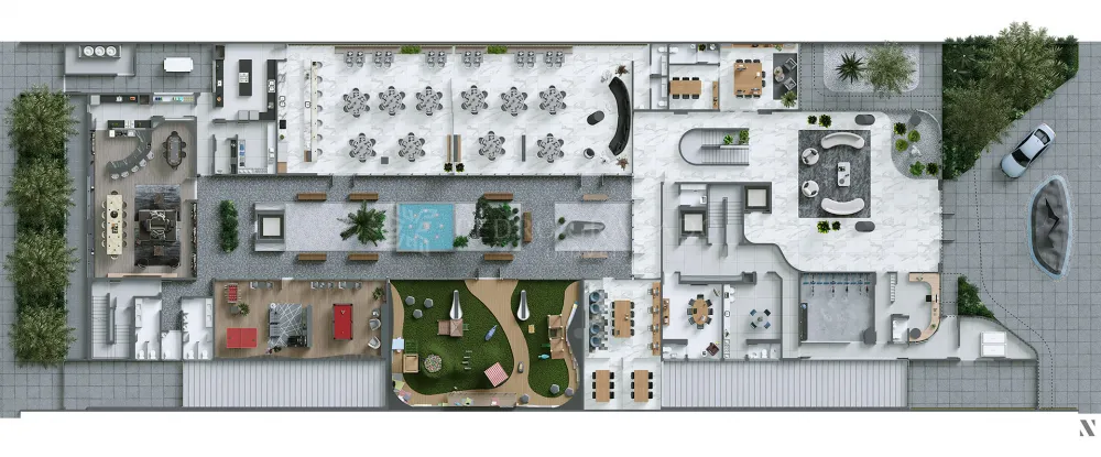 - Ampla Academia com 180 m²: Mantenha-se em forma com equipamentos modernos em um ambiente inspirador.