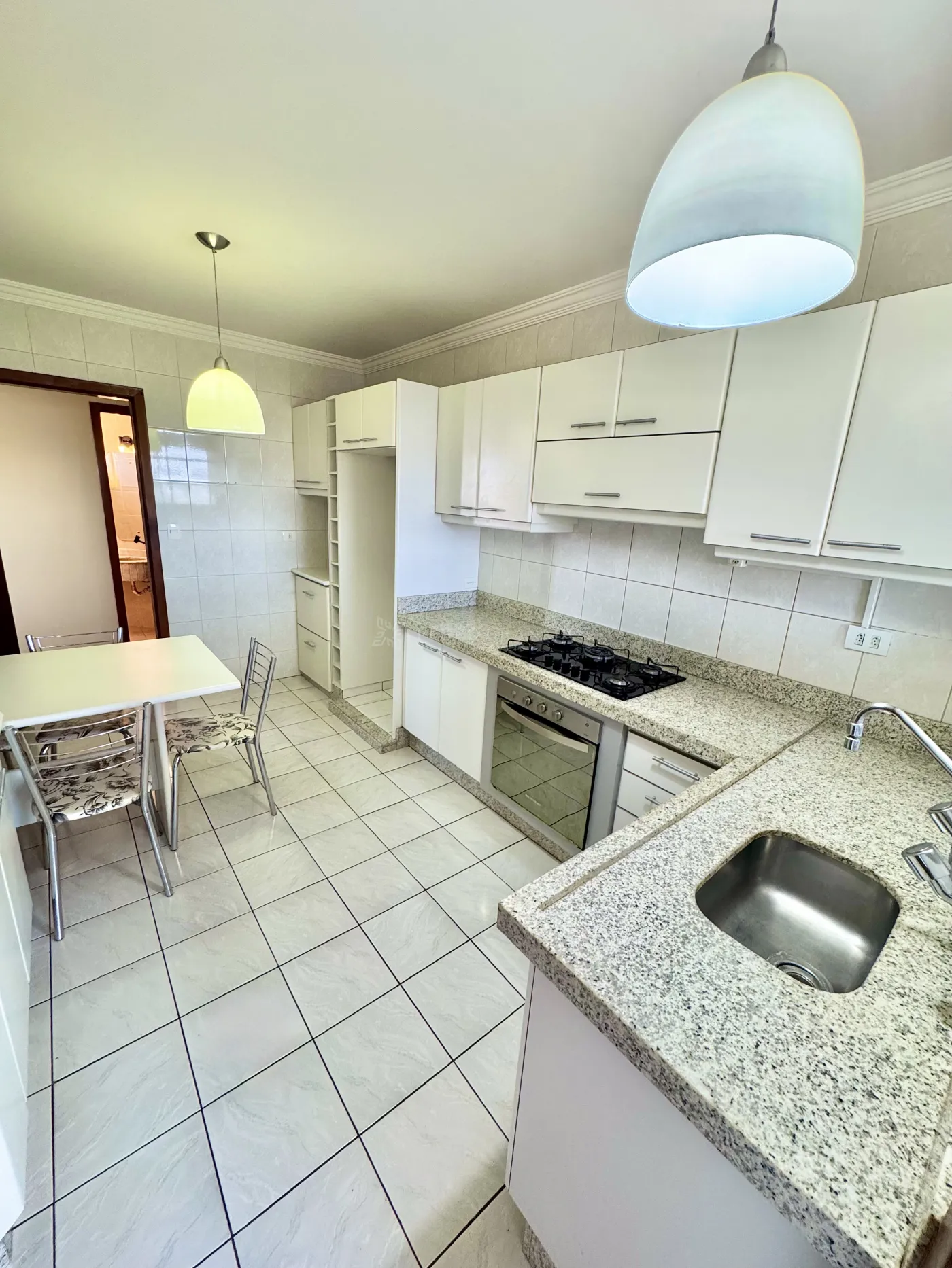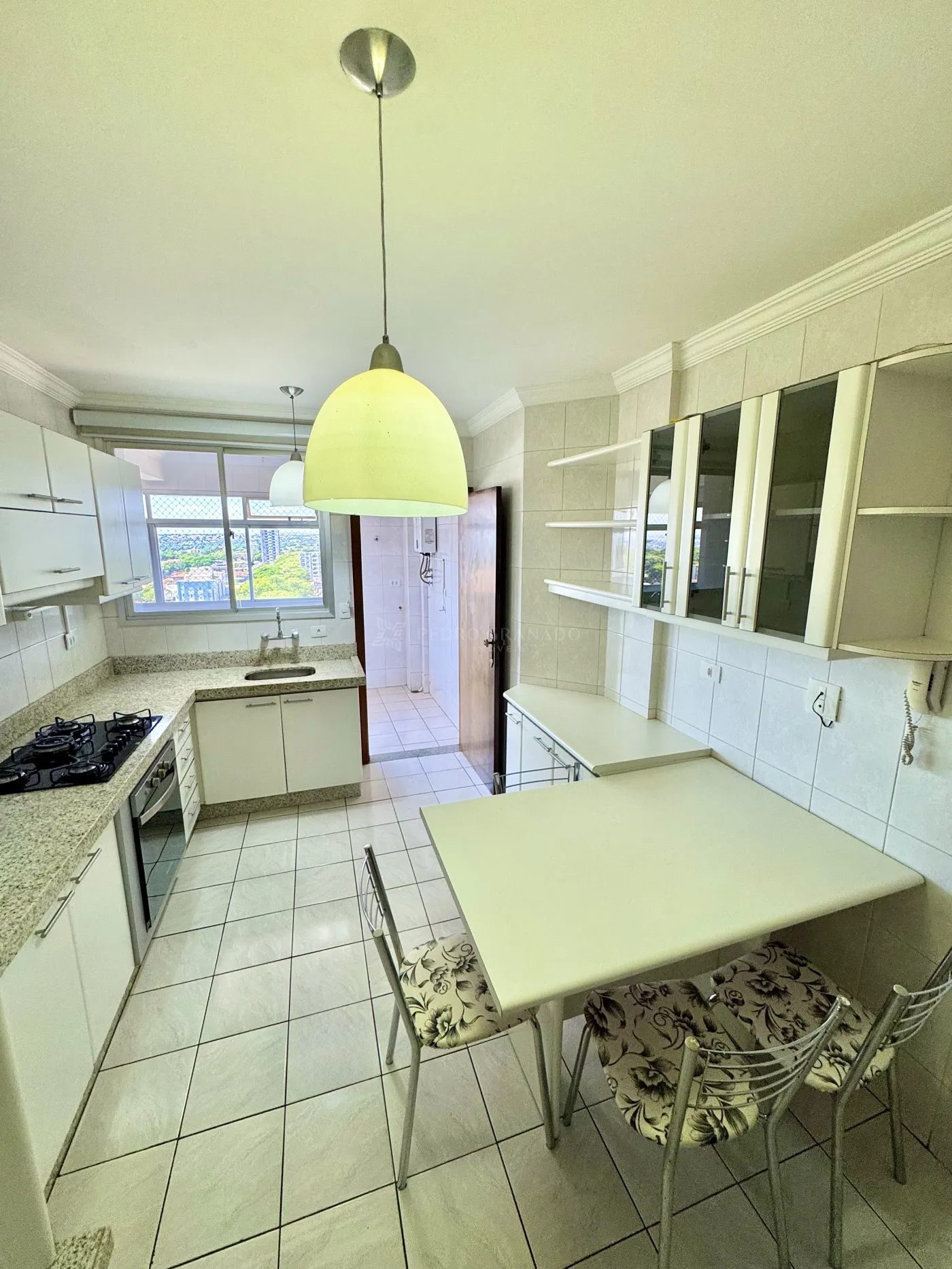 * Cozinha planejada com cooktop e forno Brastemp, área de serviço ampla, despensa e banheiro de funcionária.