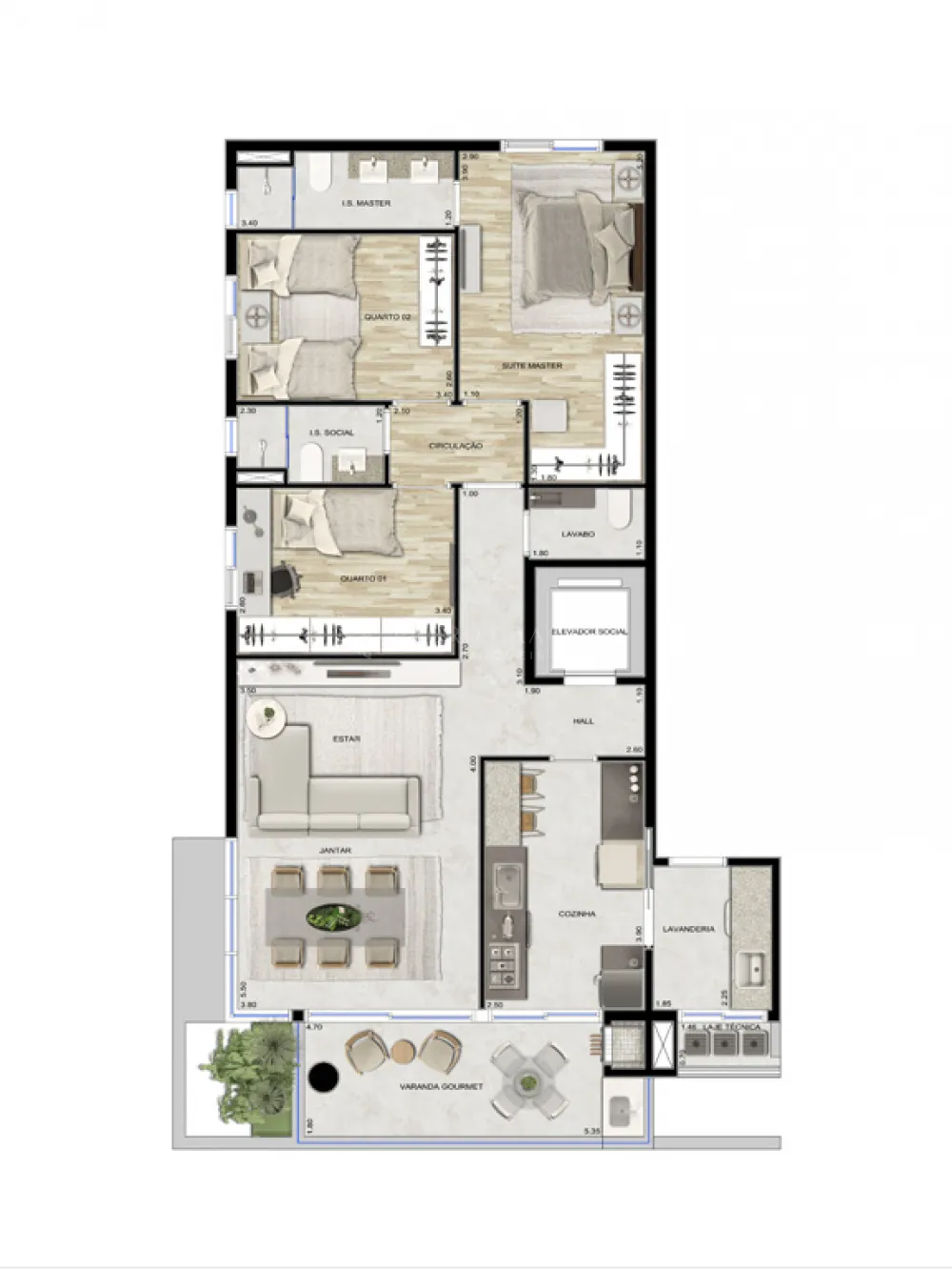 Área de lazer completa com quadra, academia, piscina, espaço gourmet, playground e horta comunitária. No último andar, piscina com vista para o estádio e academia com vista para a cidade.