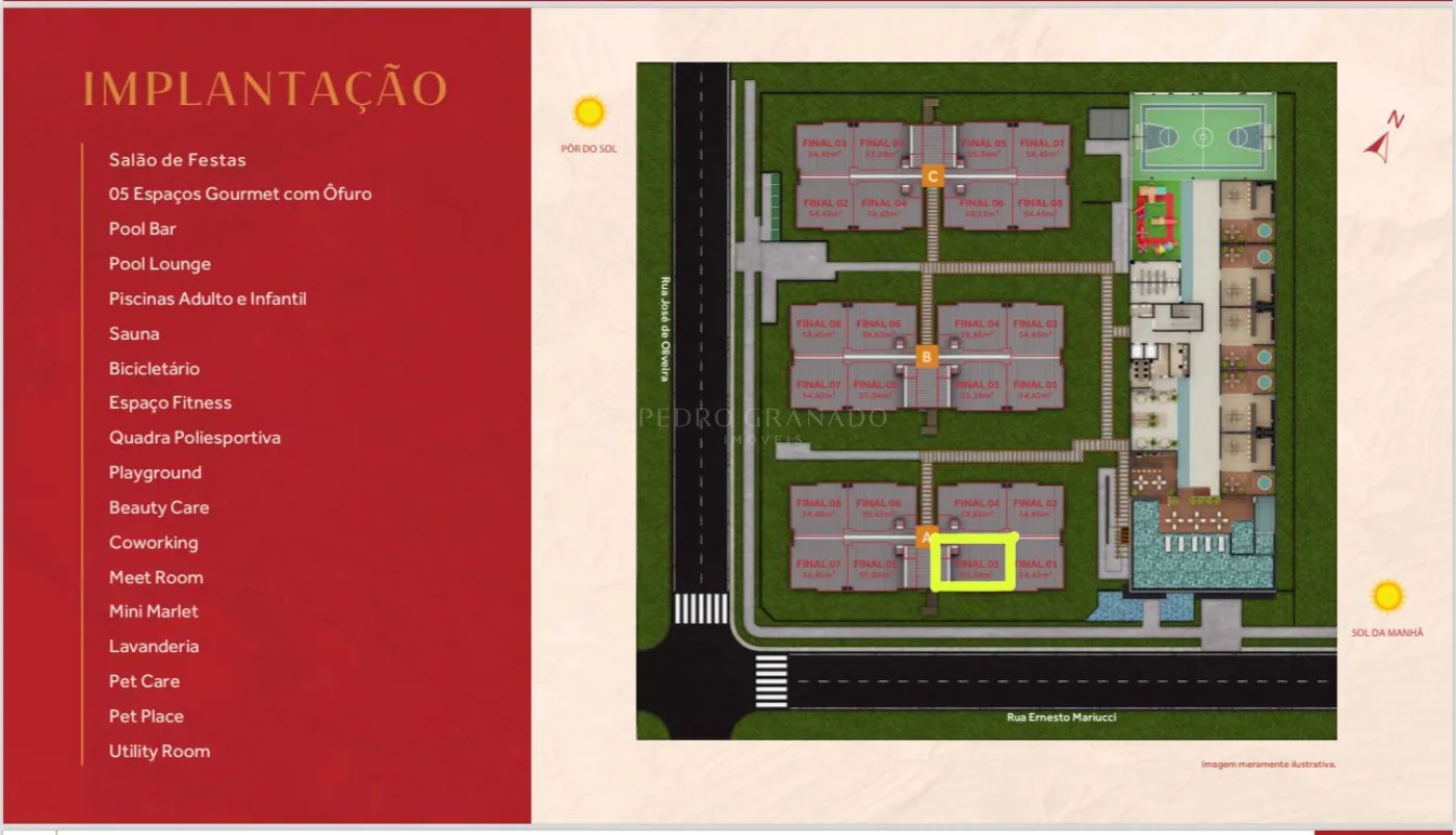Possui 19 itens de lazer que serão entregue já decorados, equipados e climatizados.