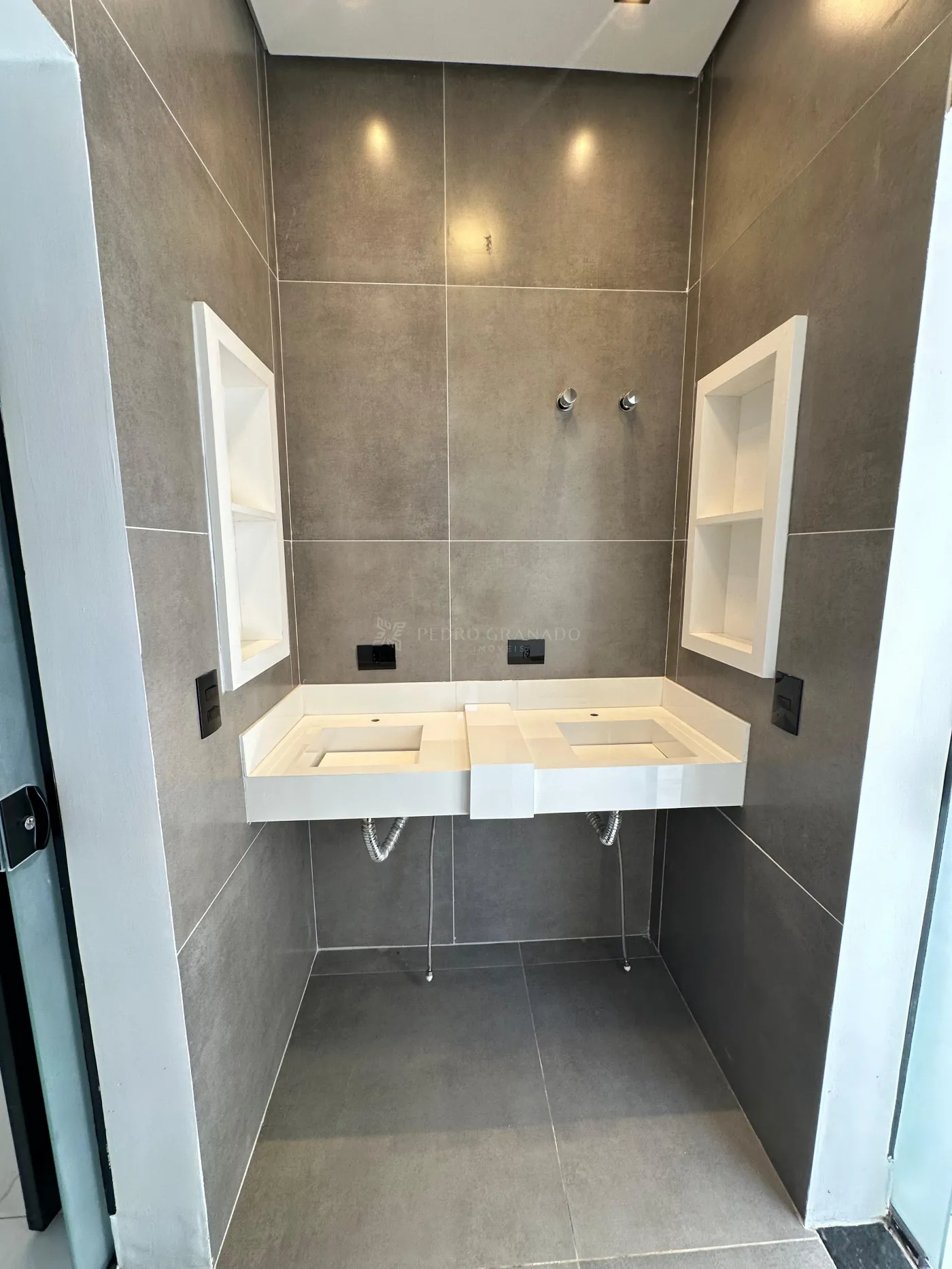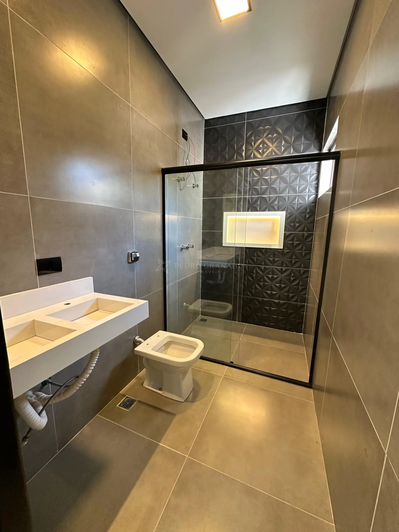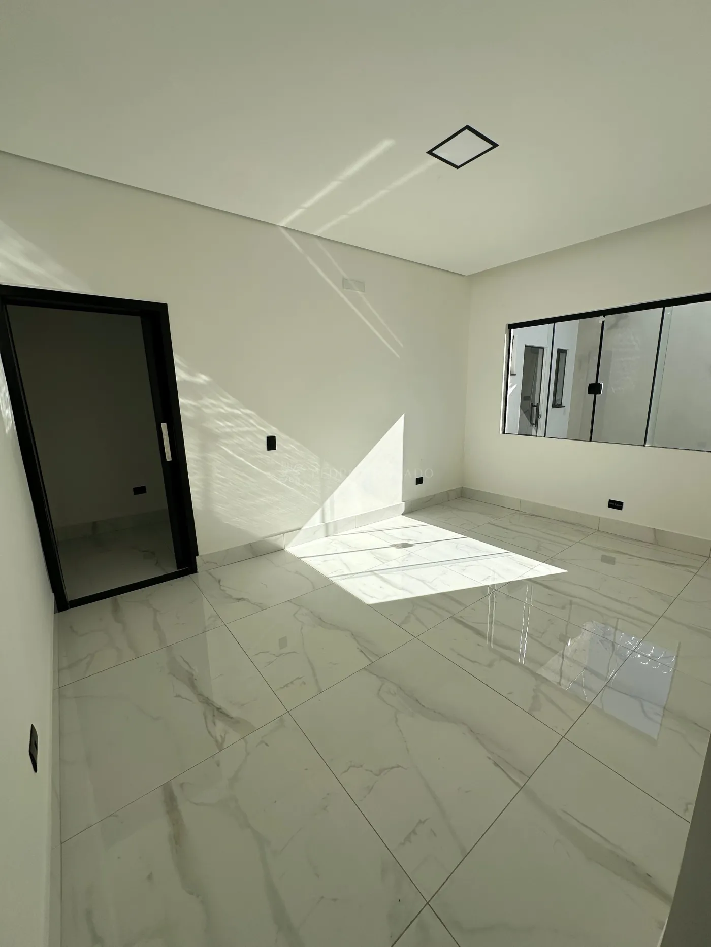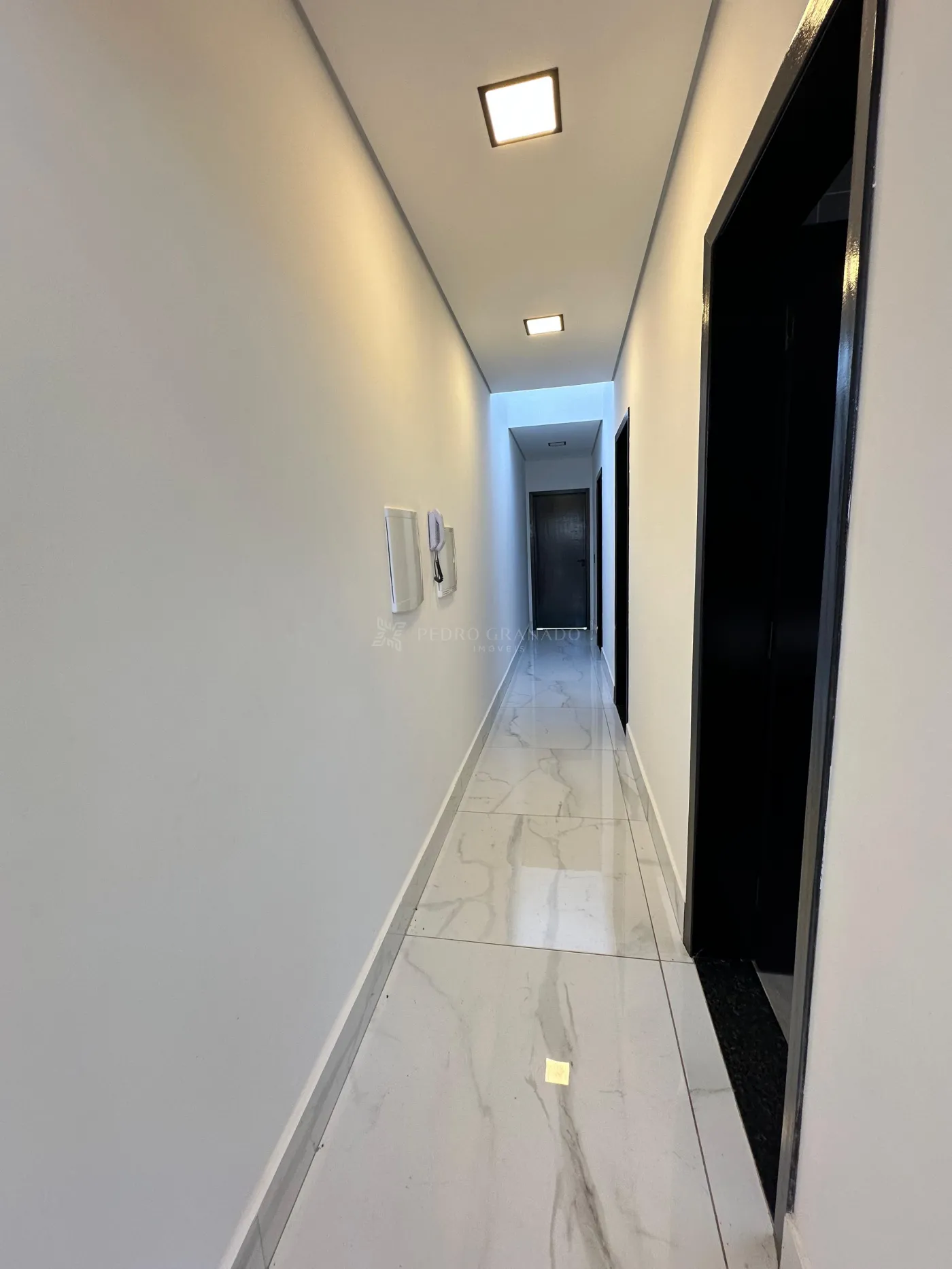 Possui garagem coberta para 2 carros (paralela), portão basculante de 3,5m, portão social com interfone eletrônico, espera para ar-condicionado em todos os ambientes, box e pias esculpidas (duplas na suíte e demi), teto rebaixado com sancas e cortineiros iluminados, clara-boia no corredor, acabamento Deca e iluminação 100% LED.