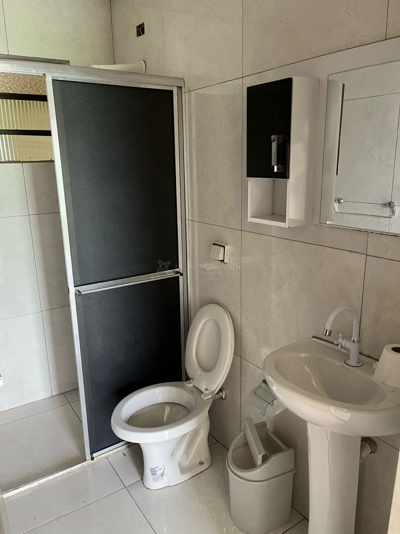 * Banheiro social, já equipado com box e espelho.