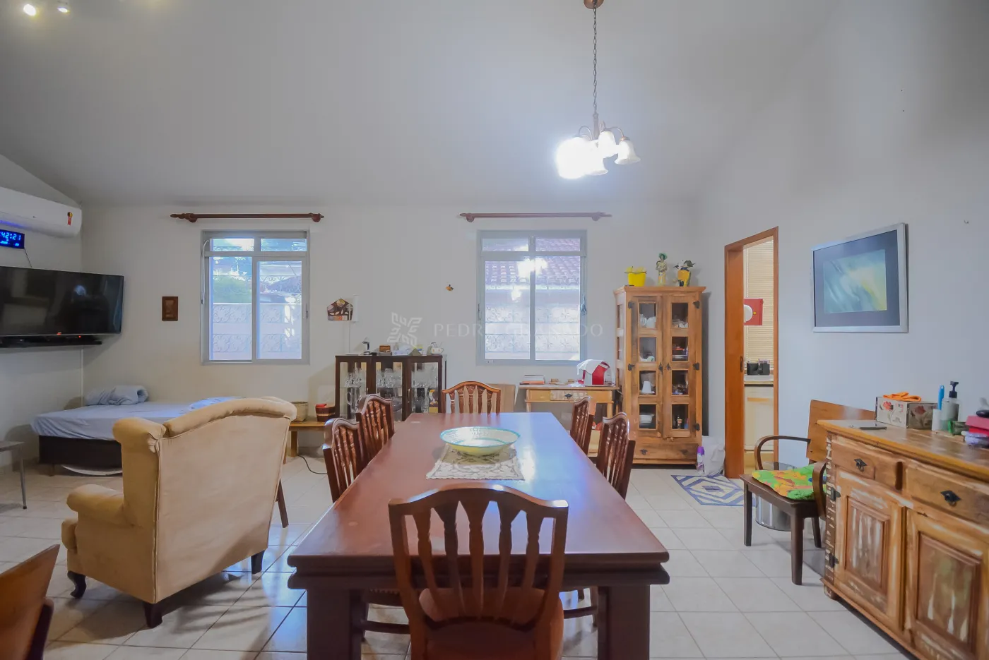 - Sala de estar e jantar integradas com pé-direito alto