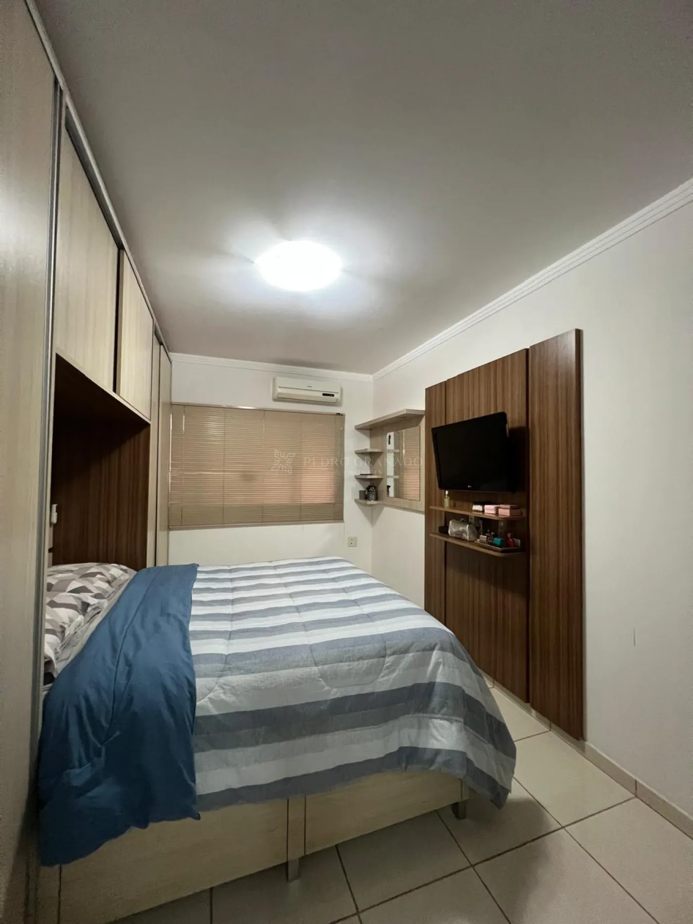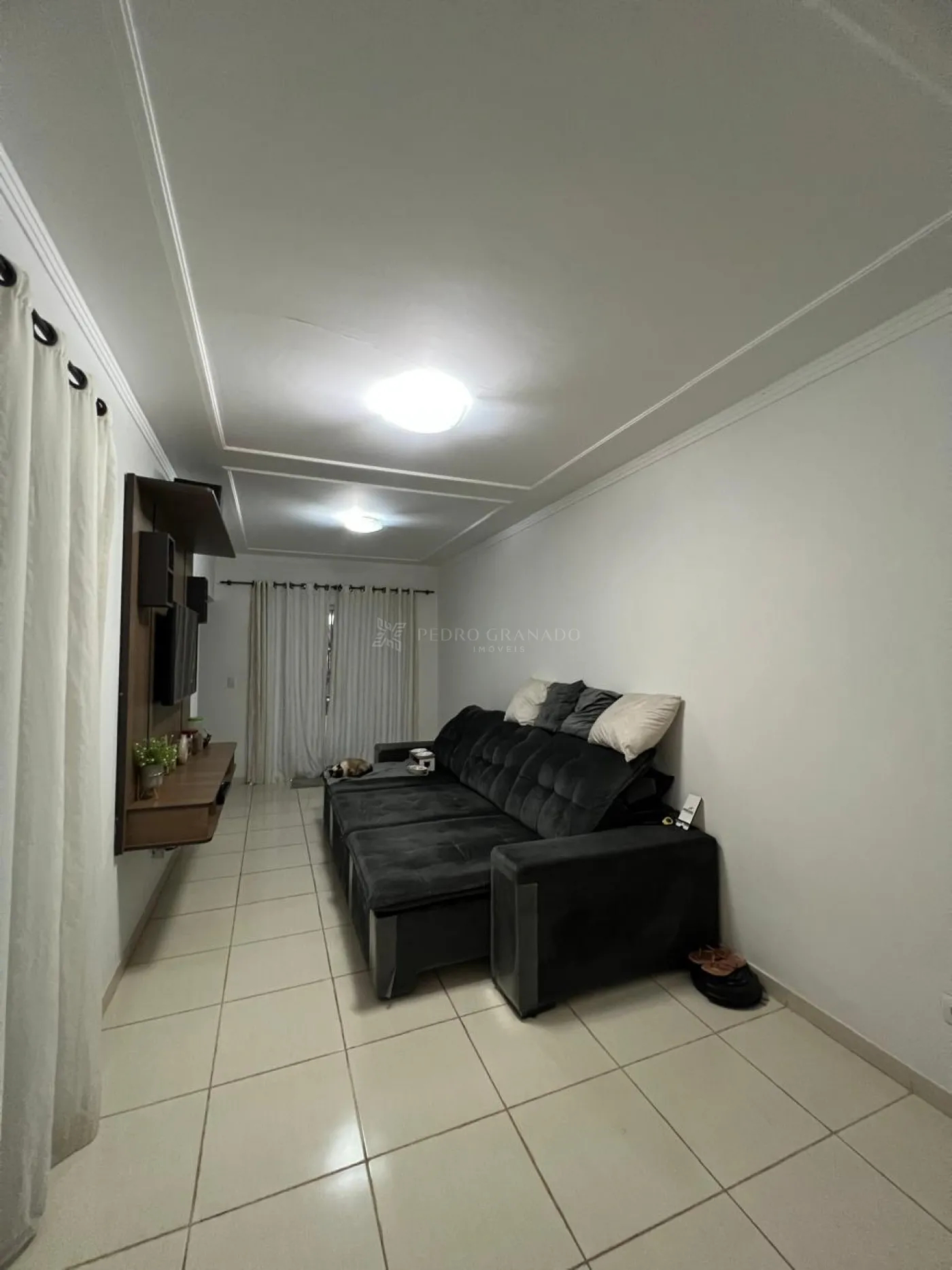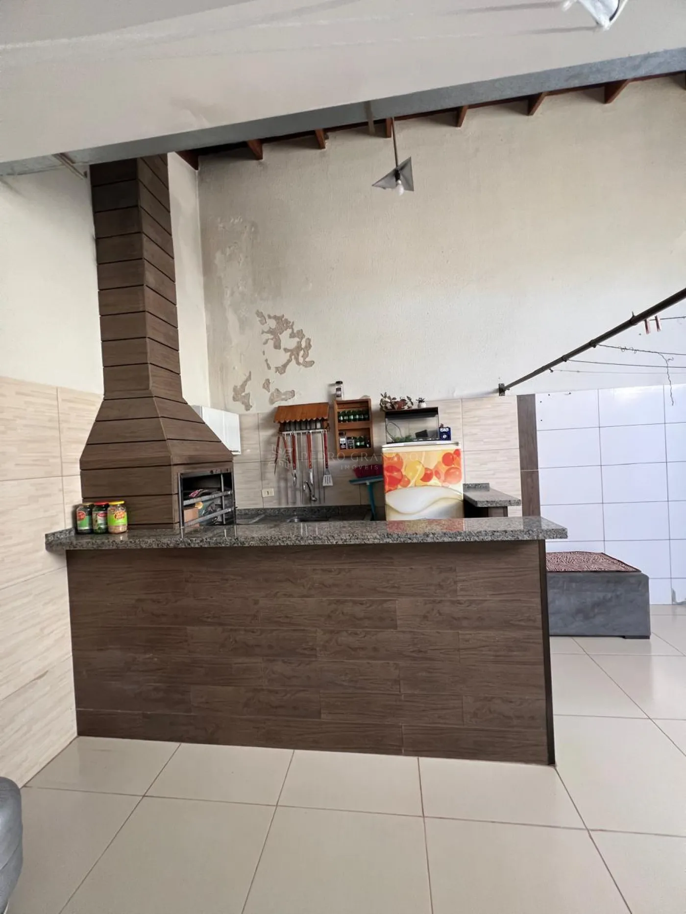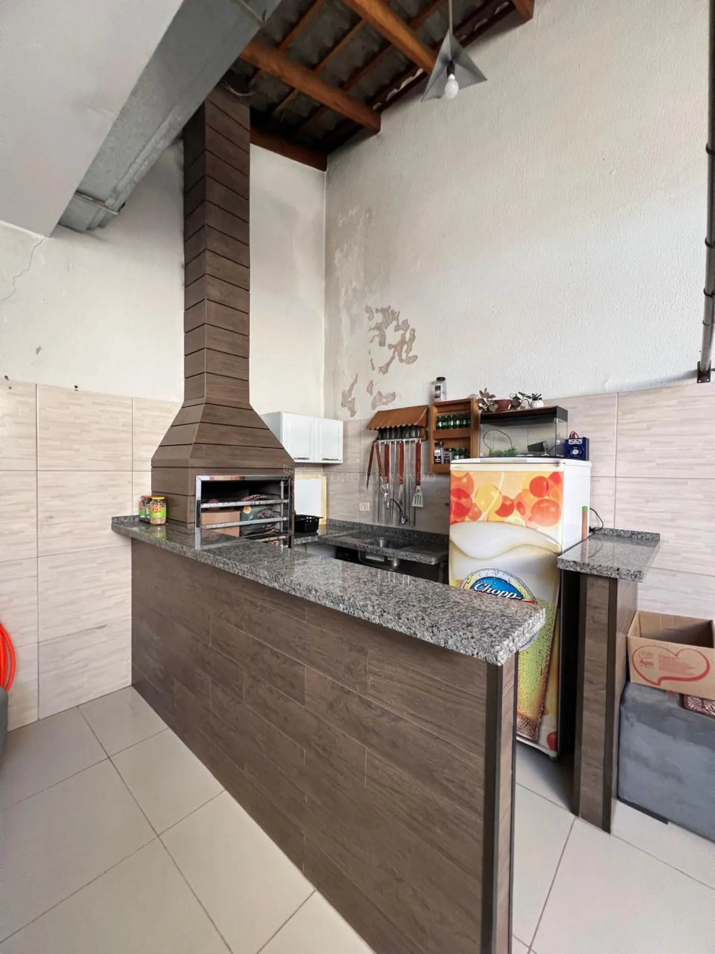 Casa térrea com 03 dormitórios sendo 01 suíte, armários planejados na suíte e ar condicionado, cozinha planejada, fogão cooktop, exaustor, sala com painel, luminárias e cortinas, fundos com churrasqueira.