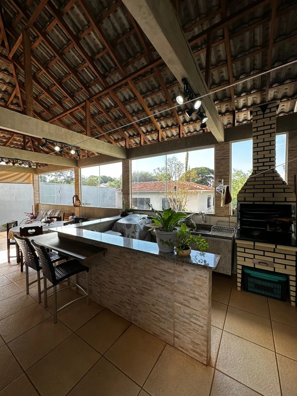 A casa da frente conta com três quartos, sala, banheiro, cozinha e lavanderia. A casa dos fundos conta com dois quartos, sala, banheiro, cozinha e lavanderia. O imóvel possui uma churrasqueira ampla e muito aconchegante para passar bons momentos com amigos e familiares.
