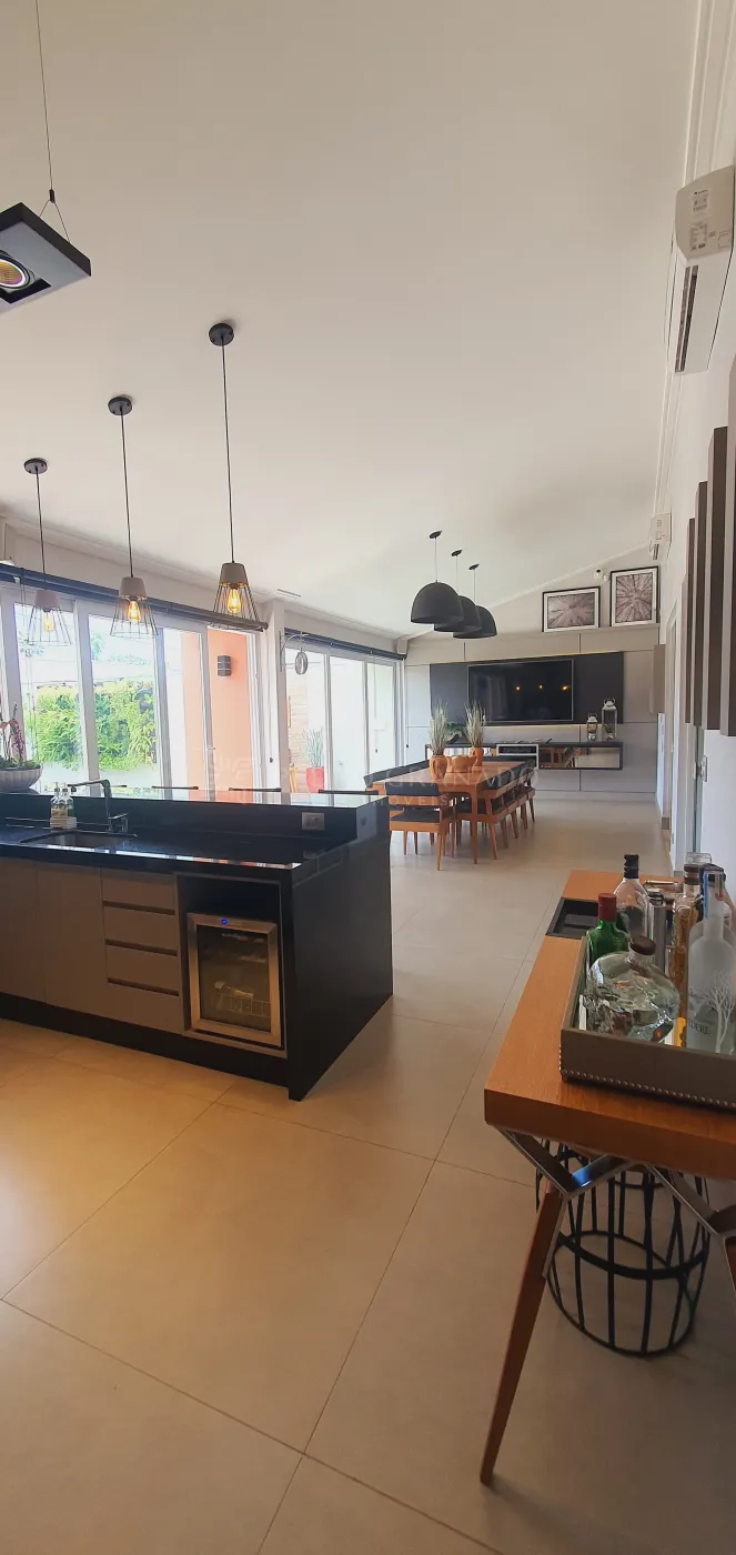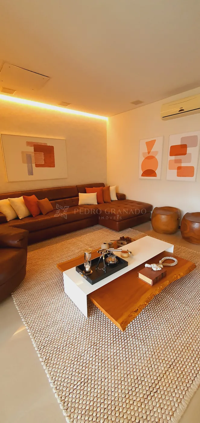 Todas as áreas comuns da casa ficam no térreo, bem como o espaço gourmet com fechamento com portas em PVC vidro duplo ,climatizado e com projetos luminotécnico e de som, tudo isso integrado à piscina com aquecimento solar.