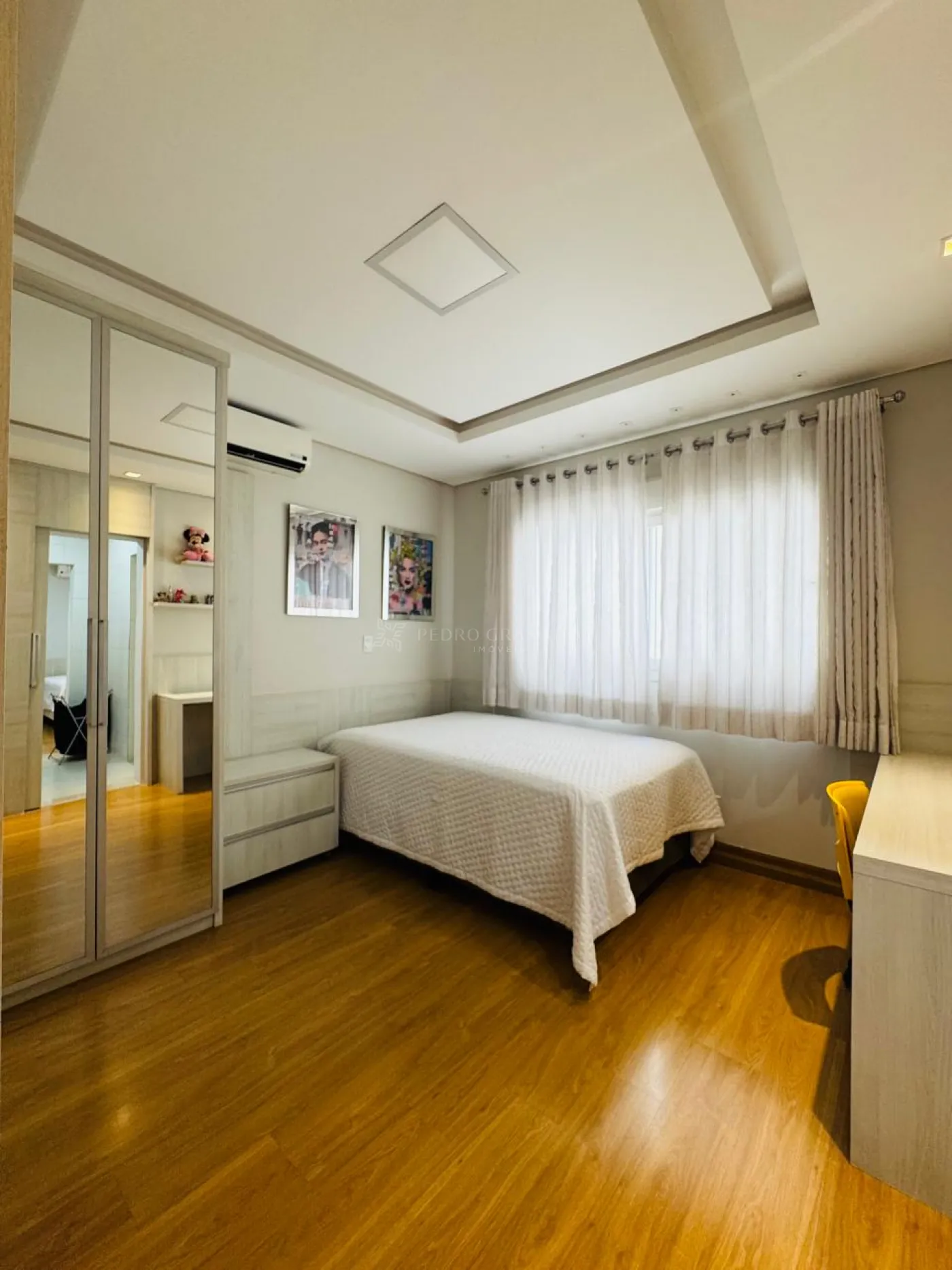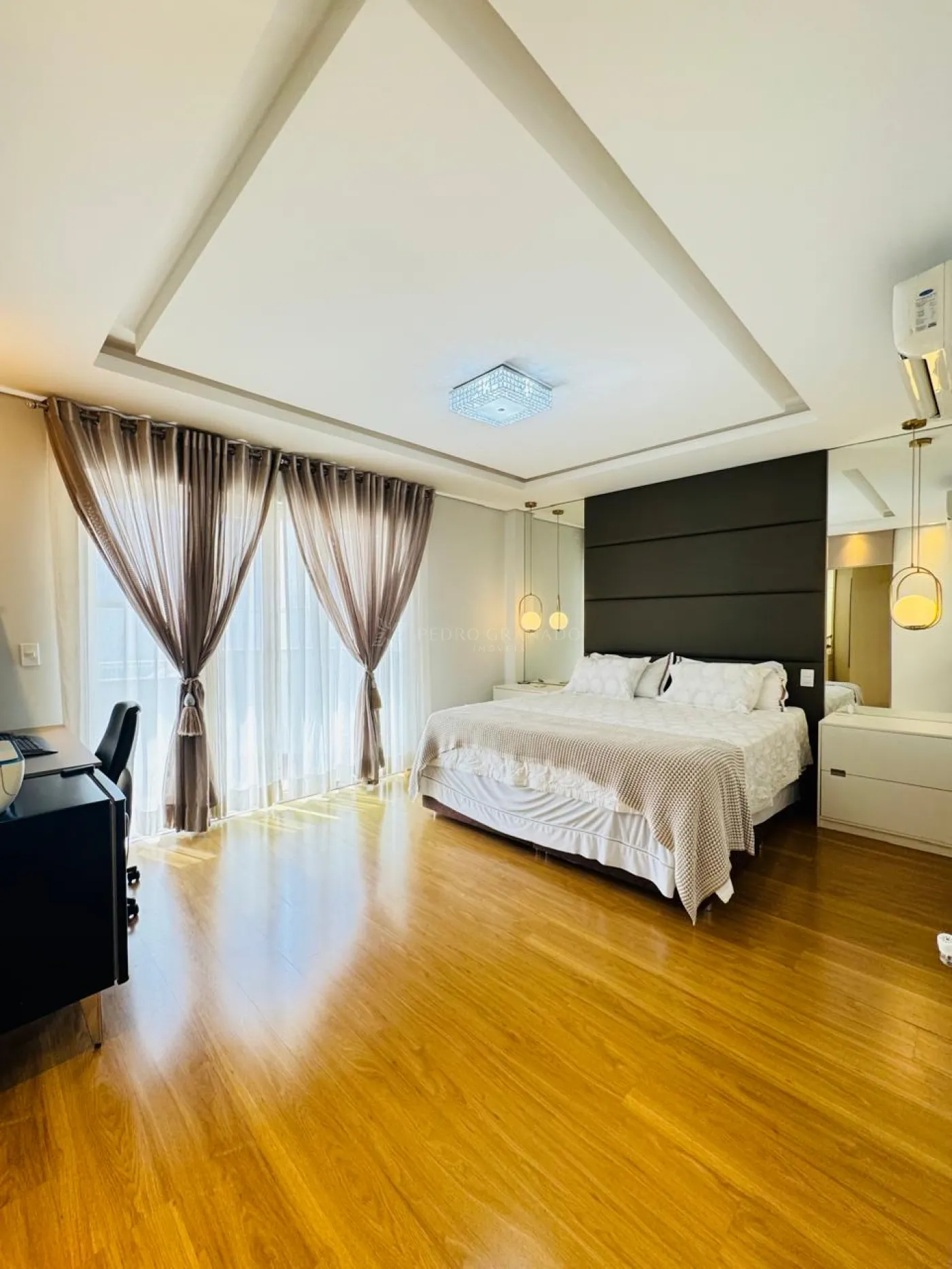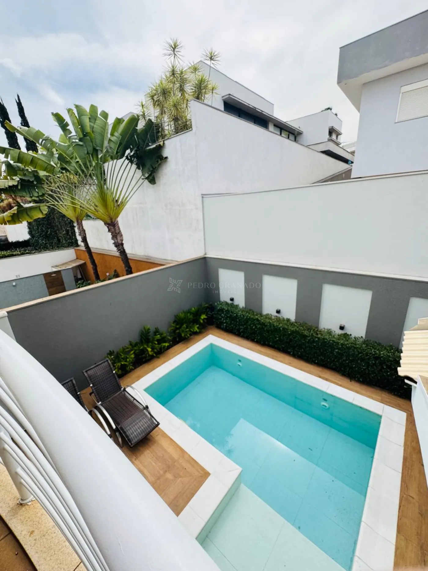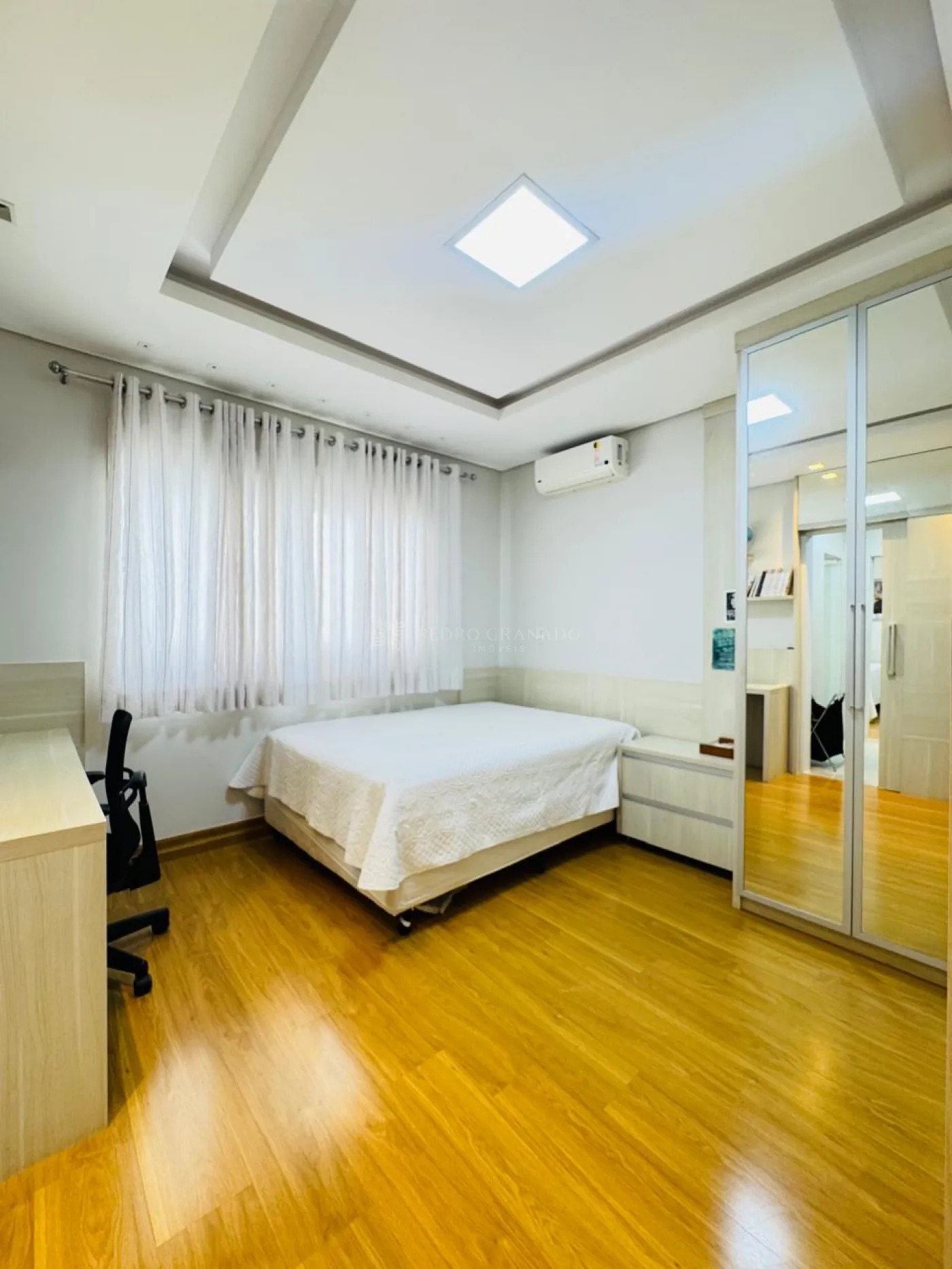 Conta com uma sala imponente com pé-direito duplo, cozinha ampla com ilha, lindo espaço gourmet completo integrado a piscina, home office, uma charmosa suíte master com closet e varanda, uma demi-suíte e lavanderia com área de serviço e dispensa independentes.