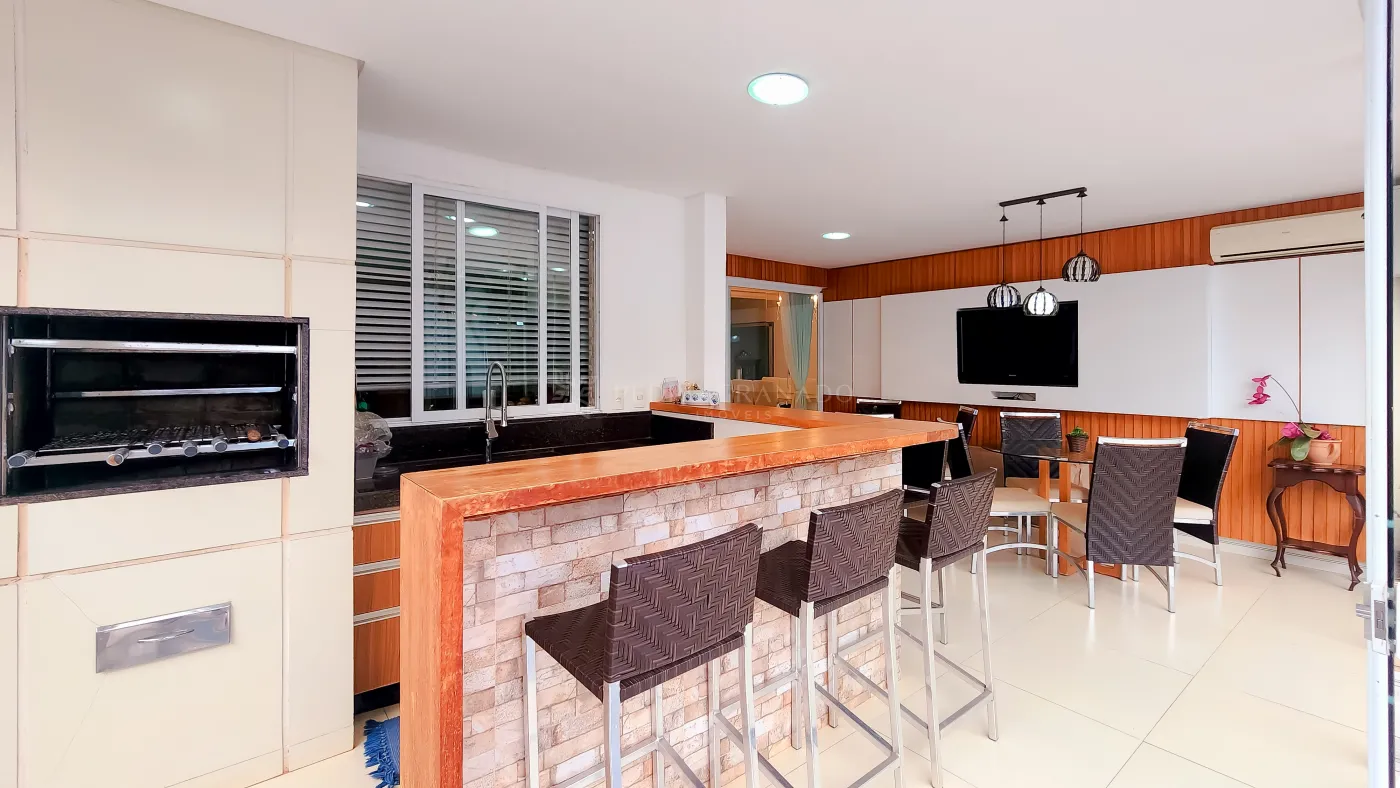 - Espaço gourmet completo, com churrasqueira, balcão em granito e integração à área da piscina