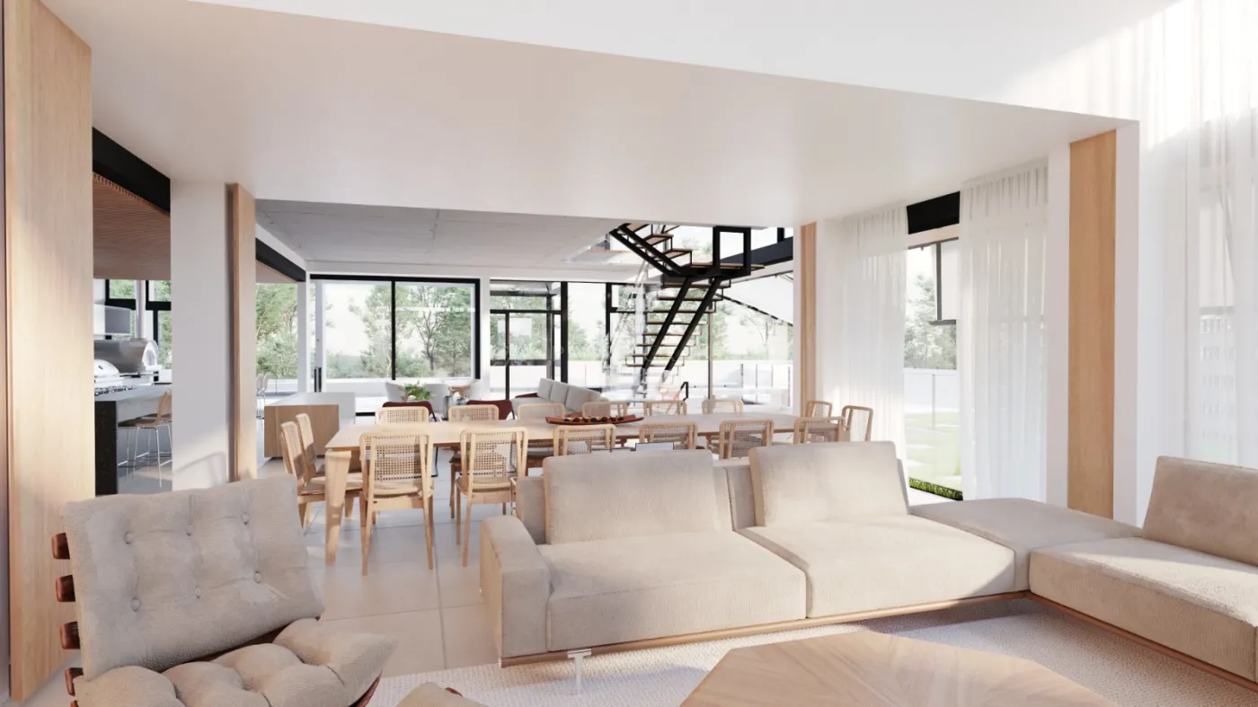 - Sala de estar integrada à sala de jantar