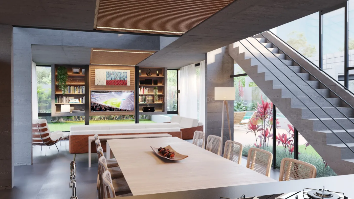 * Living com pé-direito duplo e integração total de ambientes;