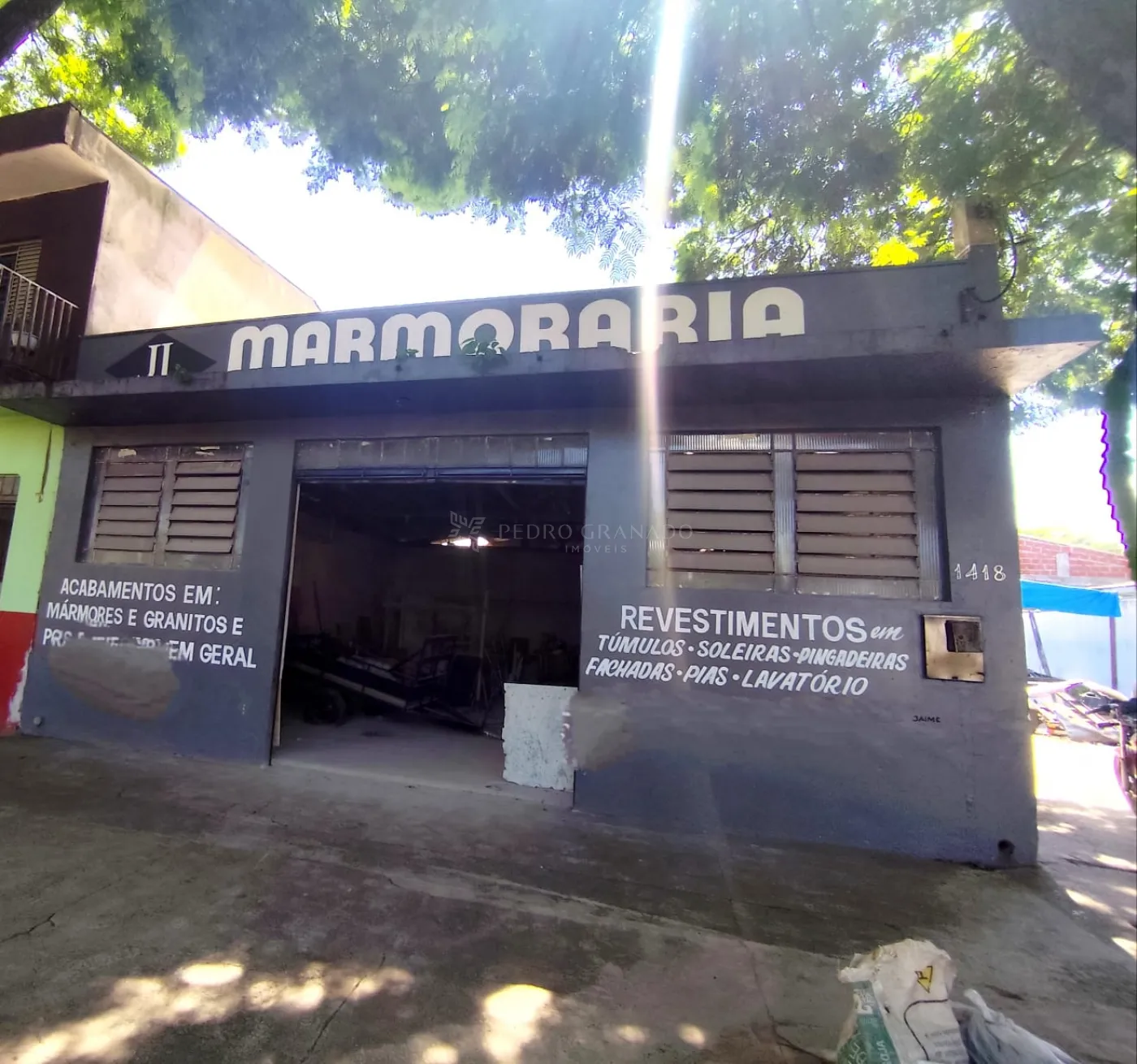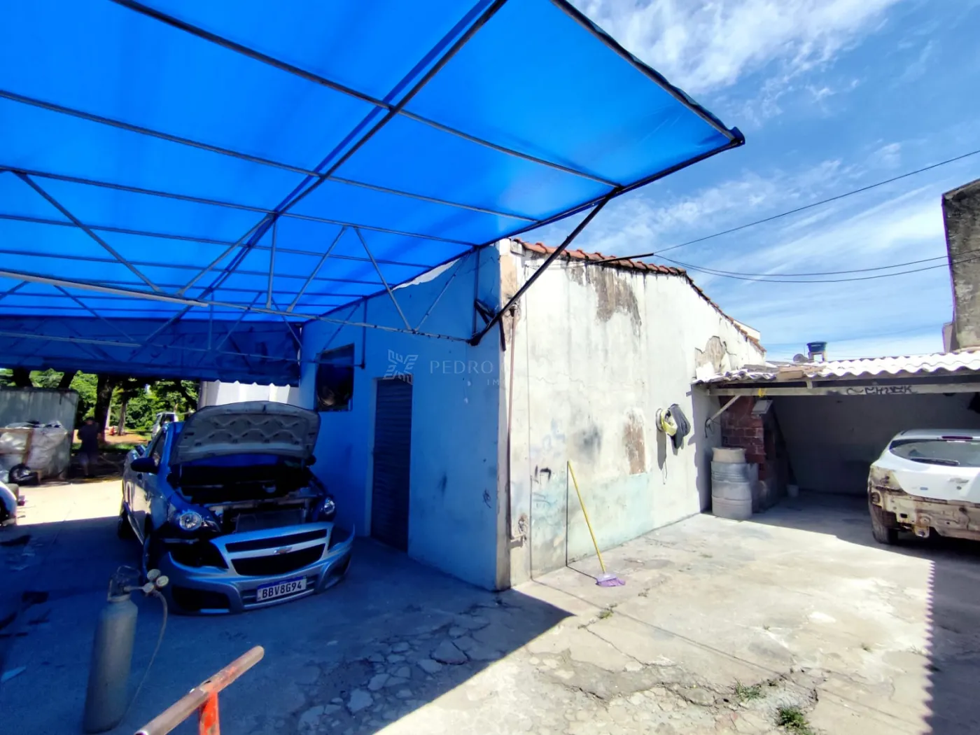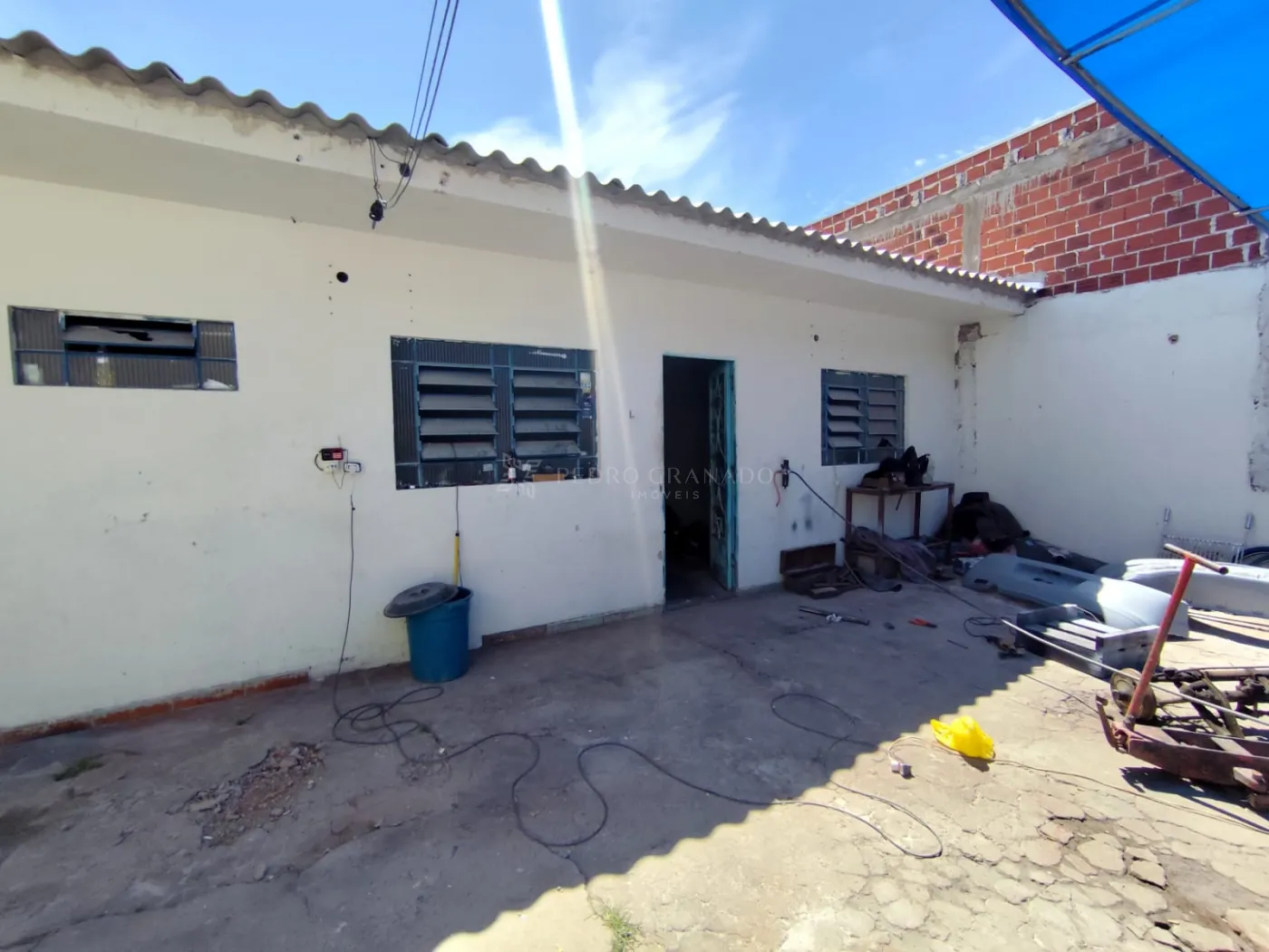 Imóvel possui amplo salão, 2 salas, 2 banheiros e 1 porta de aço.
