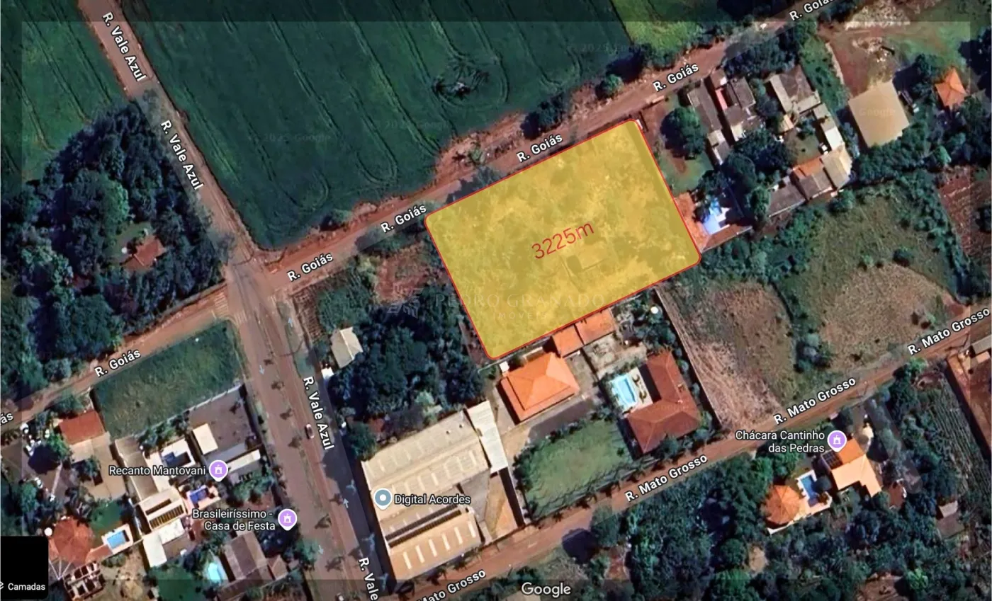 São 3 terrenos, um ao lado do outro, todos com 1075 m², sendo 20m (frente) x 53,75 (lateral), somando 3225 m² com 60m (frente) x 53,75m (lateral).